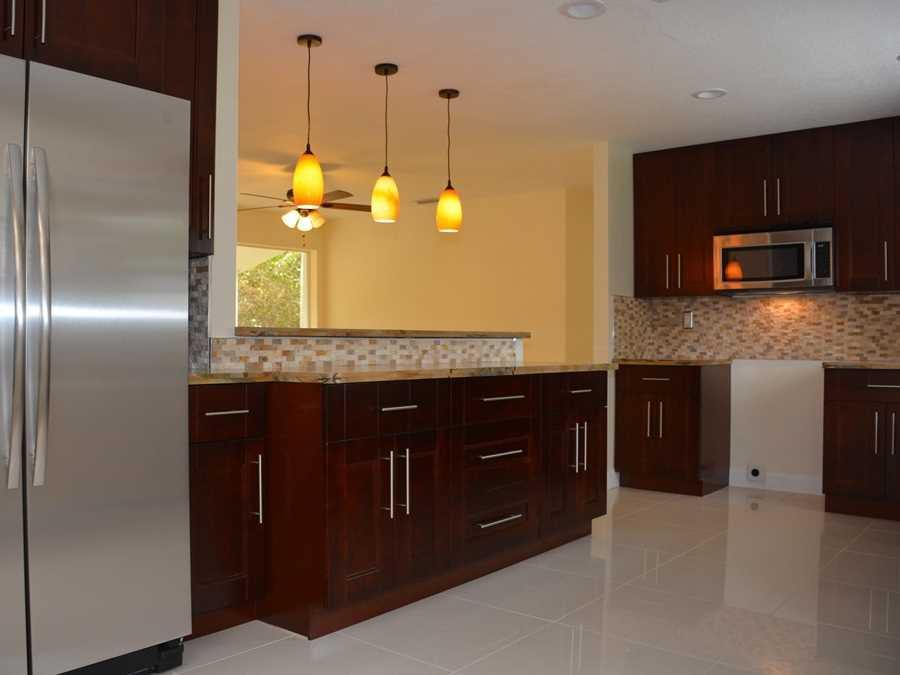 Totally remodeled home located in well sought Riverland features high end kitchen with granite counter tops, SS appliances, modern travertine back splash, 42" real cherry wood cabinets. Breakfast area. Family room. Wood floors in bedrooms & European porc elain tiles throughout. Fully remodeled baths with tank less water heater. Baseboards, fans ,fixtures, sprinkler system, landscaping, driveway. Plenty of room for a pool and more! Brand new roof & huge fenced yard. Everything is Brand New!!