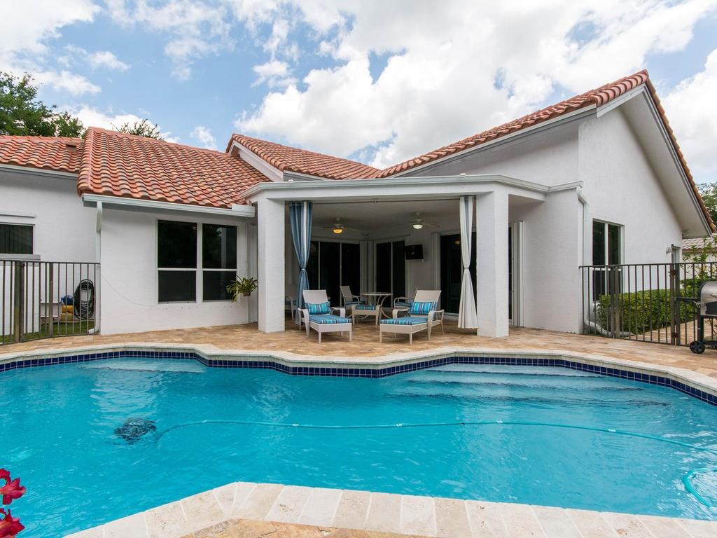 This beautiful home in well sought guard gated Country Isles features a wide open floor plan layout with a formal dining/living room as you enter the house, an open kitchen with an island overlooking the family room breakfast area, split floor plan w/ master on one side & other bedrooms (Jack & Jill) on the other. Volume ceilings, throughout. Big windows & sliding doors overlooking private backyard & pool area from every room. Brand new roof. Granite countertops. Tile & wood floors. Lushly landscaped.