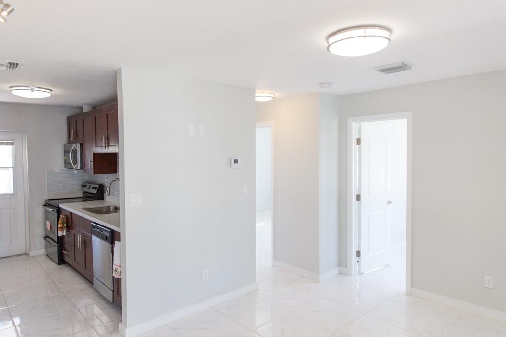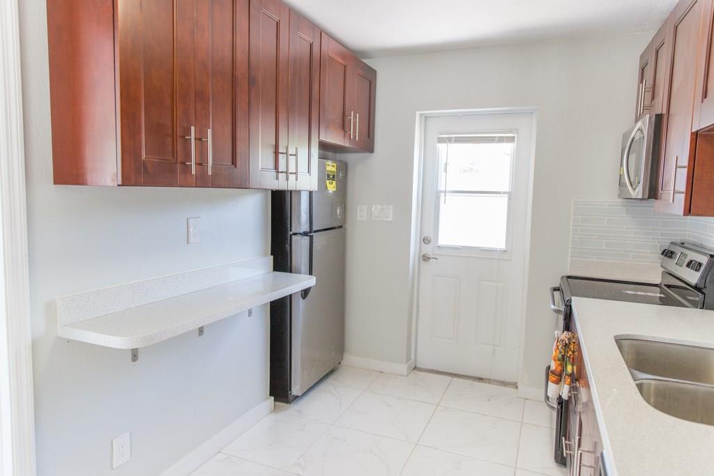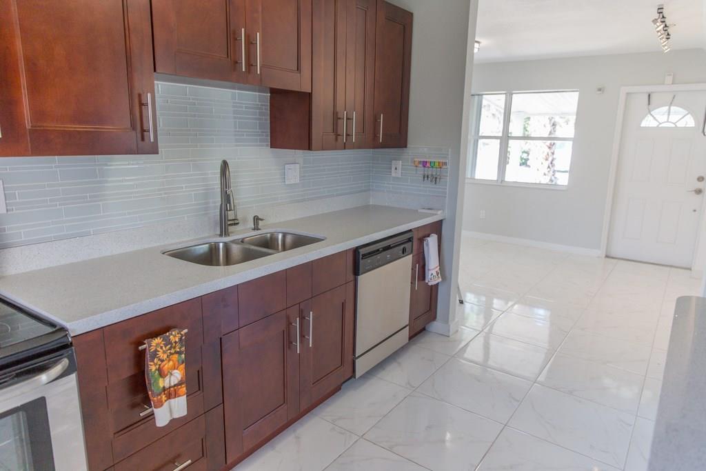 Fantastic Opportunity! This home features new stainless steel appliances; Quartz countertops, Glass tile back splash, New tile throughout, New walnut cabinets, completely new toilets, vanities, tile in the bathrooms with glass tile inlay. All New: Porch, Accordion hurricane shutters, Exterior shed on concrete pad, Sprinkler system, Air conditioning system handler & compressor, Wired high speed cable and Internet, Insulation, Roof, Light fixtures, Fence, new sod & landscaping. Great Location!