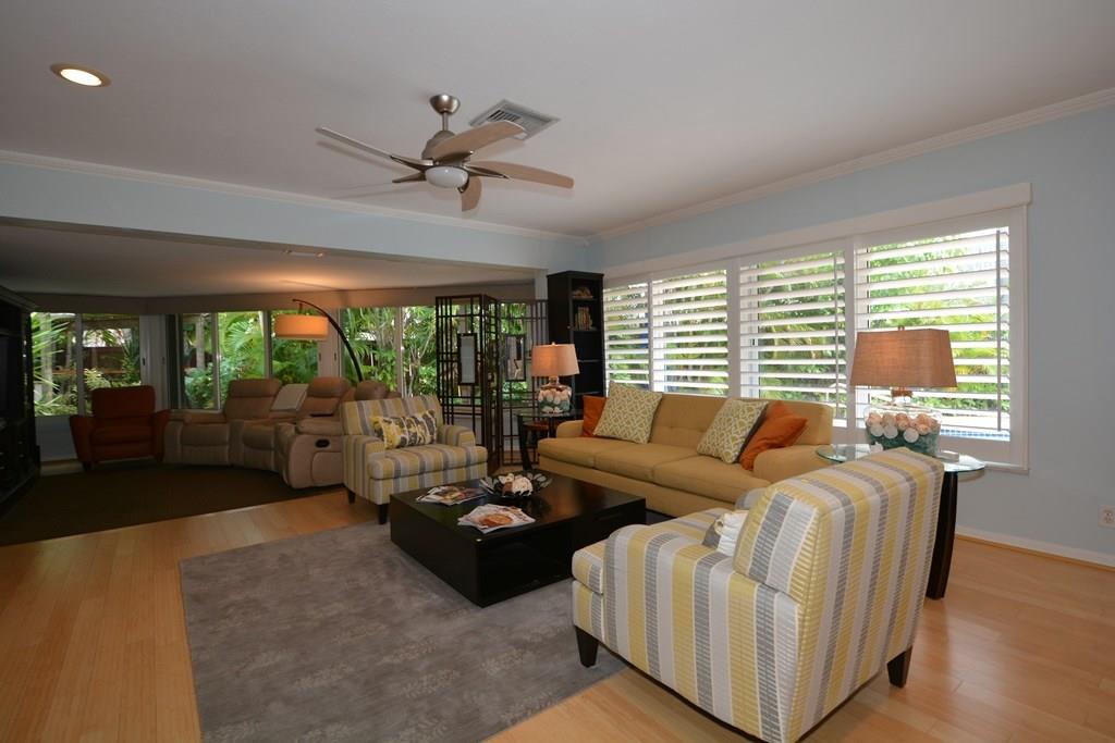 Beautifully renovated and professionally landscaped pool home is certain to please! Inside offers an open, split BR floor plan that flows seamlessly to multiple entertaining areas. Custom kitc. w/maple cabinetry & Argentinean granite counters. Hardwood flrs and walls of impact windows & doors. Outside boasts southern exposure, a sun-drenched salt water heated pool & hot tub. New plantation shutters, newer A/C, full house generator. Lots of closets, Over sized 2 car garage and laundry room. Fantastic area!