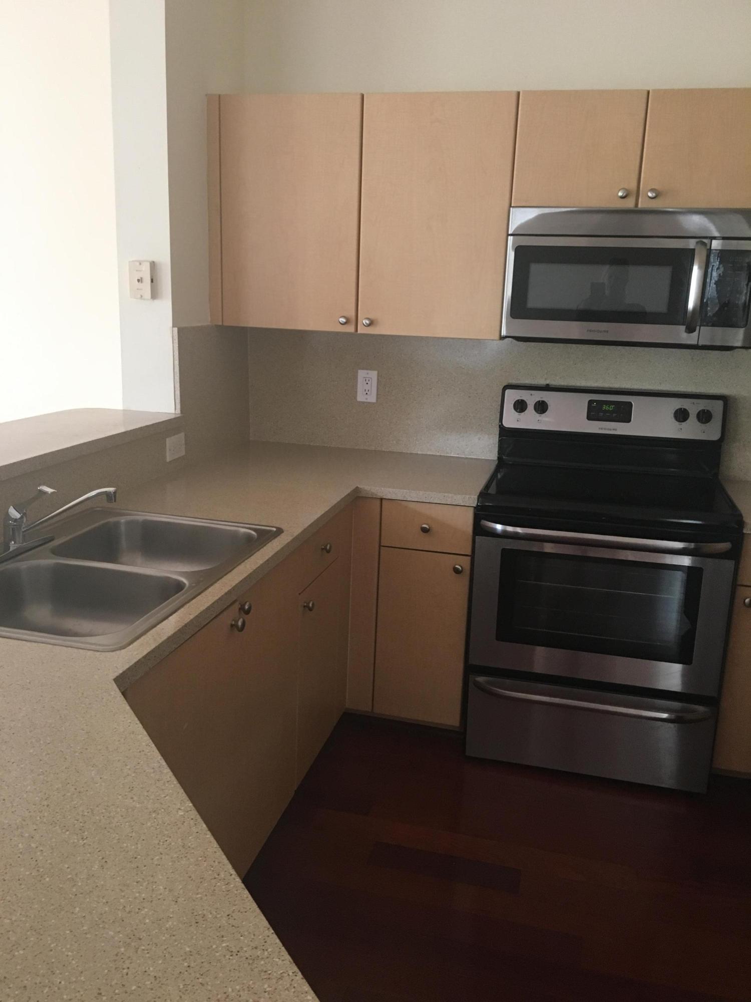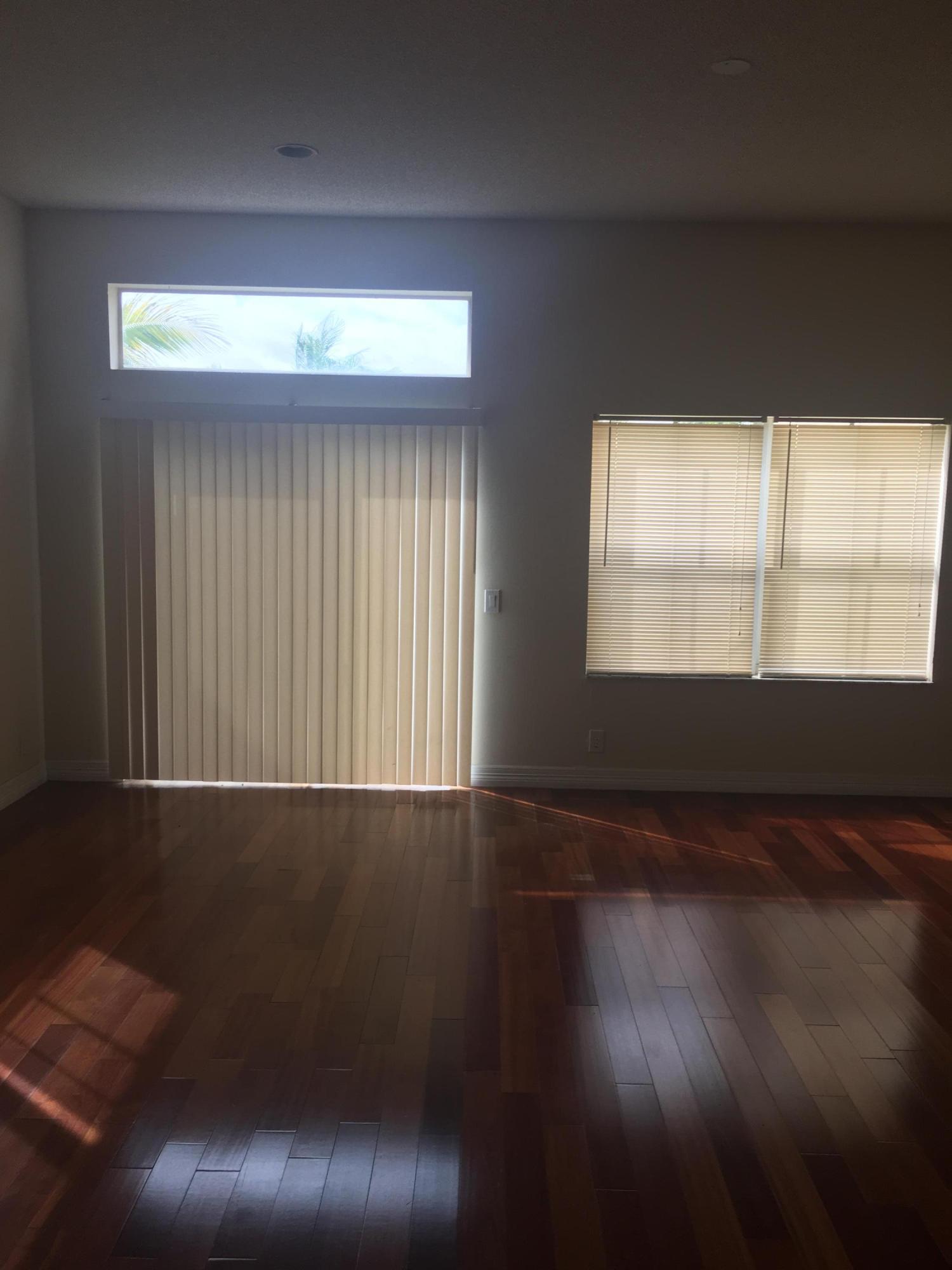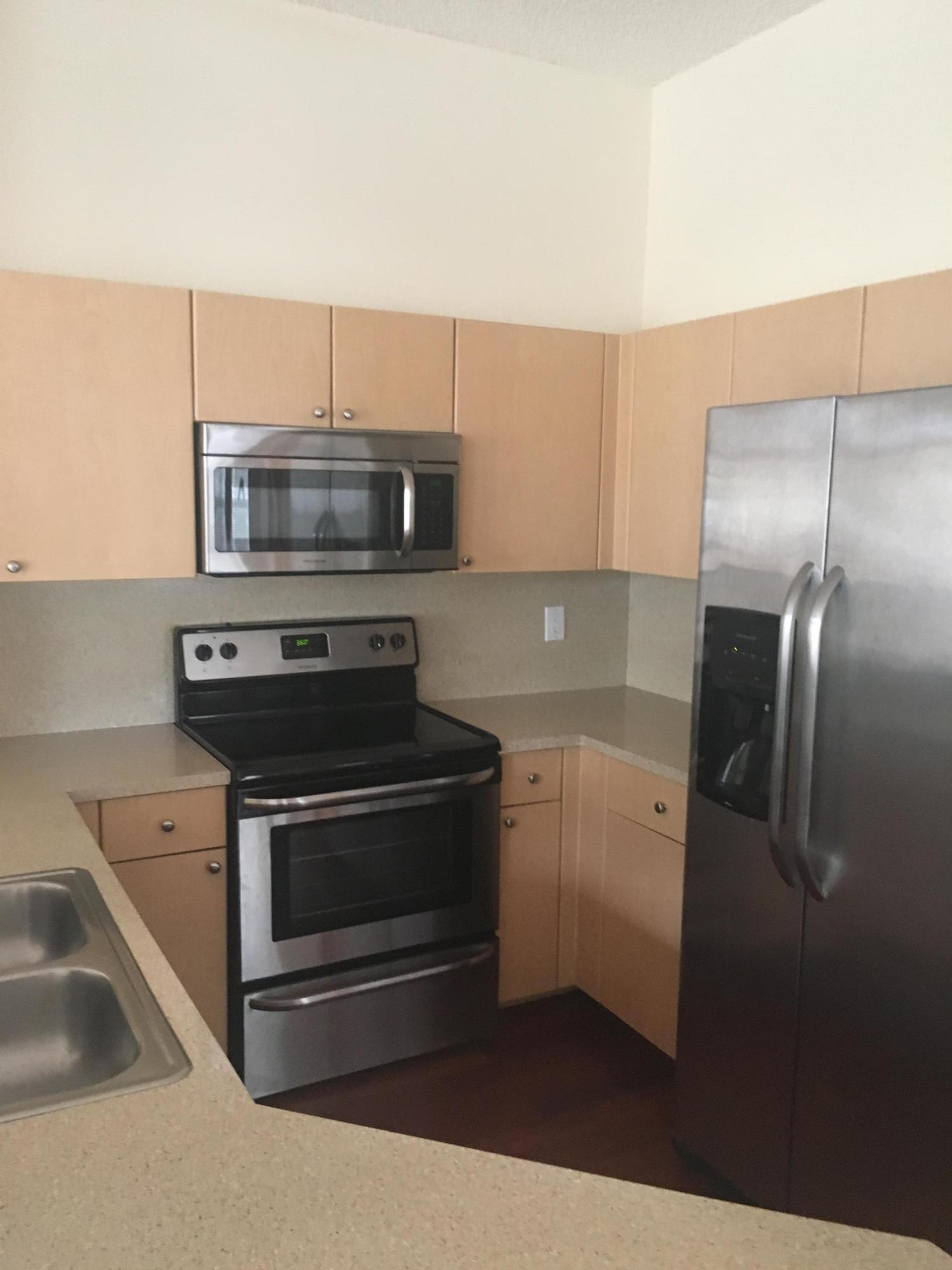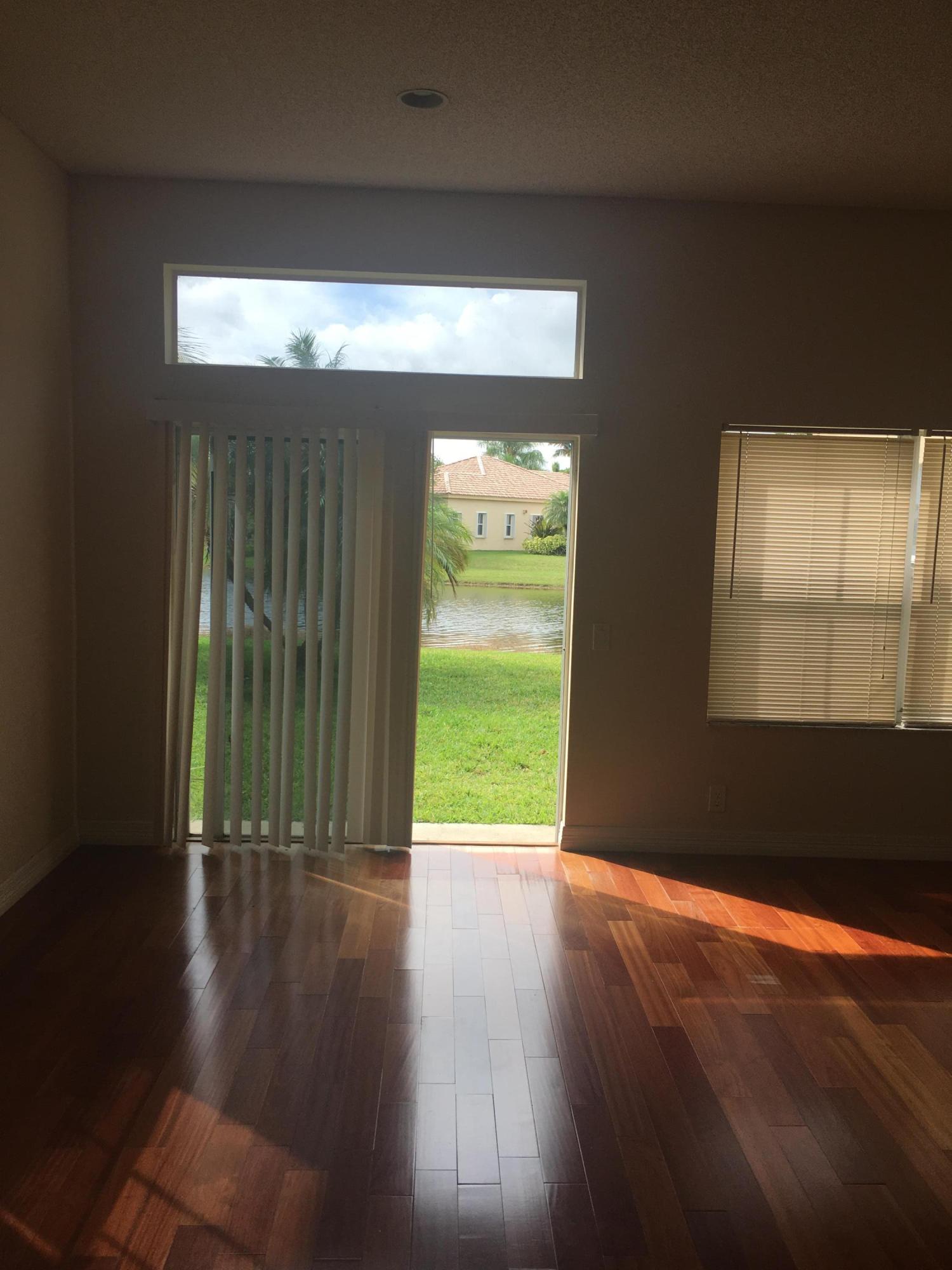 Lakefront living! 3/2 w/2 car garage, wood floors, kitchen has SS appliances and bar area. Living area sliders open up to gorgeous view of lake. Master Bath has dual sinks, roman tub and separate shower, water closet. Master bedroom has lake views from all windows. Gated community with guard gate for privacy. Property is ready to be made a home!