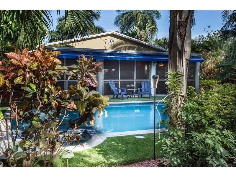 This recently-renovated home in the heart of Fort Lauderdale offers natural light throughout and incorporates the tropical beauty of its surroundings, with large picture windows presenting a lushly landscaped garden, the perfect space for entertaining gue sts and family. The oversized backyard is a private hideaway belying its suburban setting. A chef's kitchen includes stainless steel appliances and granite countertops. Two of the bedrooms feature built-in wall units camouflaging queen-sized murphy beds.