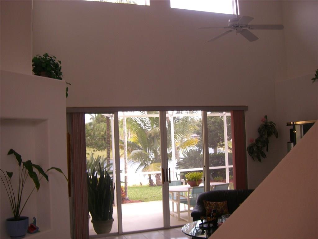 Great Catalonia Model. 3 bedrooms, 2 baths with Family Room, and full 2 car garage and a huge, roofed , screened Patio on a beautifully, landscaped WATERFRONT LOT WITH A SOUTHERN EXPOSURE. This is a great floor plan in that the Master Bedroom Wing with a huge bedroom, large Master bath with separate shower and Tub and a GIGANTIC CLOSET. is upstairs all by itself with beautiful FRENCH DOORS LEADING TO THE PRIVATE PATIO. High ceilings almost everywhere, and a very large driveway.
