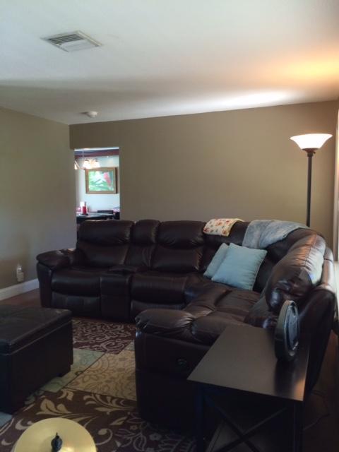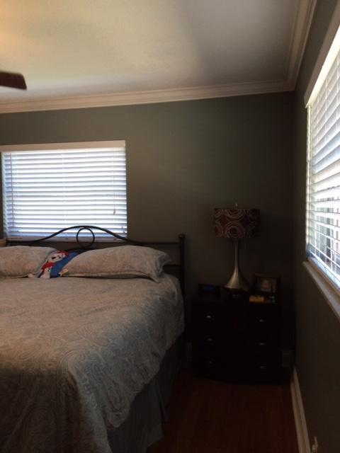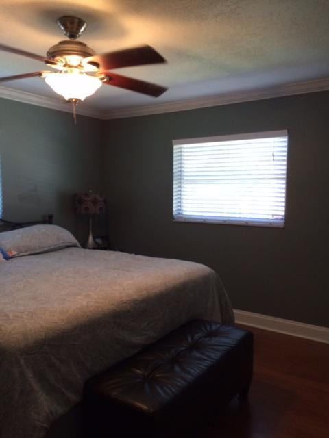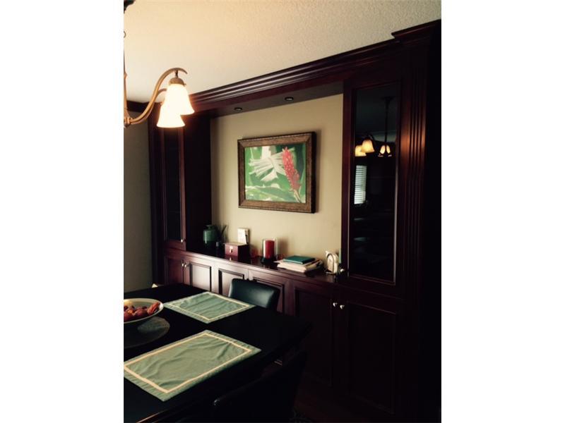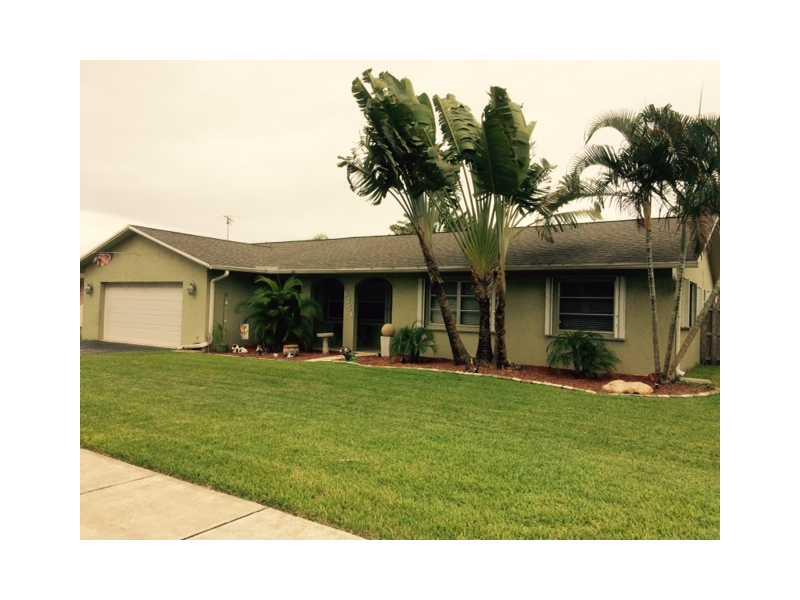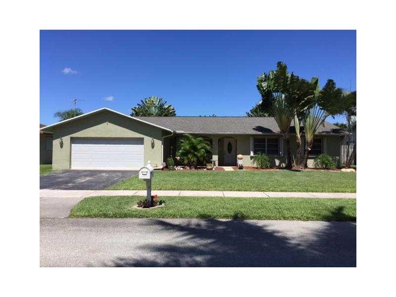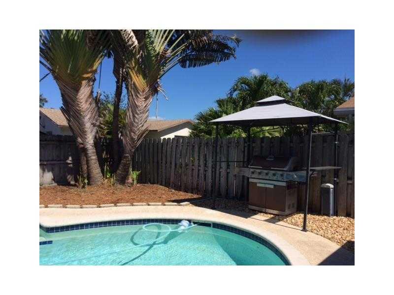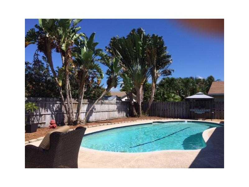WARM and WELCOMING. Lovely four bedroom home nestled in well maintained and highly desirable family neighborhood. Custom built-in cabinetry in kitchen and family room. Wood floors throughout. 2 car garage with laundry area. Hurricane shutters. French door s open to fenced in back yard with large free-form swimming pool with ample room to relax and entertain. Split bedroom plan. Walk-in master closet with built-ins. Remodeled master bath with slate shower walls. Modern kitchen. Close to family park & shops.