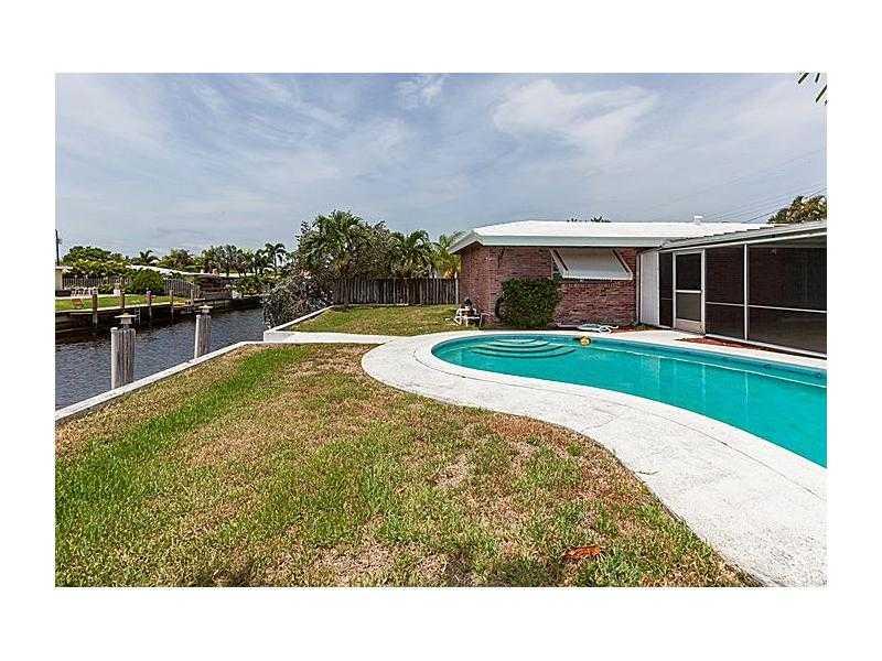 Estate Sale- Great opportunity to own this well kept waterfront pool home. This home features a split floor plan, tile and terrazzo floors, open kitchen, lots of natural light, large lot, utility room, huge screened Florida room, free form pool, circler driveway and 80 foot of sea wall. This will not last!
