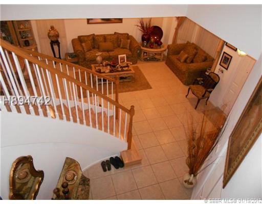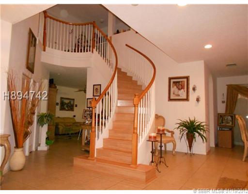 LARGE HOME. ALL BEDROOMS UPSTAIRS. LARGE SIZE ROOMS THROUGHOUT. THIS HOME HAS BUILT IN HEATED POOL (POOL HEATER AS IS) WITH SPA, FENCED IN YARD OVERLOOKING WIDE CANAL. TILE FLOORS THROUGHOUT THE FIRST FLOOR, WOOD LAMINATE FLOORING ON BEAUTIFUL CURVE STAIR CASE AND CARPETING UPSTAIRS. LARGE MASTER BATHROOM WITH SEPARATE WATER CLOSET, ROMAN WHIRLPOOL TUB AND SEPARATE SHOWER PLUS DUAL SINKS. EXTENDED BRICK PAVER DRIVEWAY AND MORE. EXCLUDE THE FANS IN BEDROOM, FAMILY ROOM AND OFFICE PLUS WINDOW TREATMENTS.