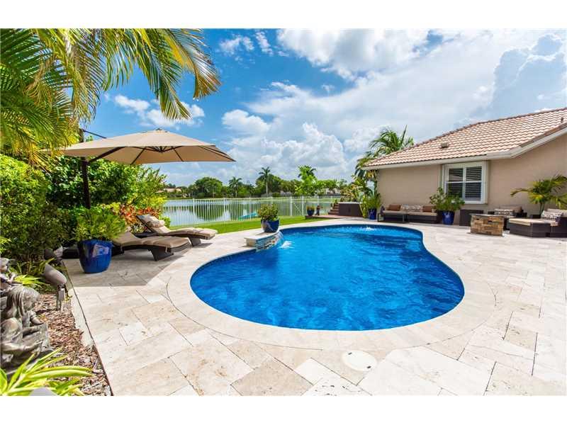 Updated wide lakefront Carrington model w custom pool.Dramatic volume ceilings, top designer finishes, large formal dining,living & family rooms,stately French pattern limestone & Italian wood style tile,spacious new granite kitchen & cabs w under counter LED lighting, stainless appliances,eurostyle sink w touch faucet.Huge Master w onyx & slate bathroom,river rock spa shower, new tub & vessel sinks, new solid wood doors, handcrafted wood built-ins, new window treatments, accordion shutters