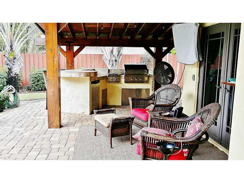 Totally updated pool home. Huge kitchen with S/S appliances, 2 dishwashers. NEW: Impact windows & doors, White Plantation shutters, Pool heater, Fiber optic pool lighting, A/C & Ducts, Pool heater, Tankless water heater, Awnings, PULSE security system, Washer & Dryer, Fresh painting. Pool resurfaced, Covered built-in summer kitchen with built in gas BBQ Grill, refrigerator, granite bar & seating with paver deck. Cedar closets. Circular, Paver driveway. Exotic landscaping. Storage shed in back.