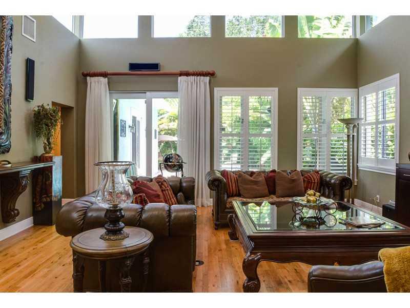 Charming curb appeal w/expansive addition, soaring ceilings w/ high impact windows, lots of light, luxurious master bathroom w/jetted tub, two master suites, 3rd bedroom + office. Large laundry room, gourmet marble & stainless kitchen w/gas cooking island , crown molding, butler pantry w/wine fridge, fireplace, full security system w/cameras, wired for surround sound, plantation shutters, private tropical pool w/out door shower and lighting. Minutes from the beach, parks, shopping and fine dining.