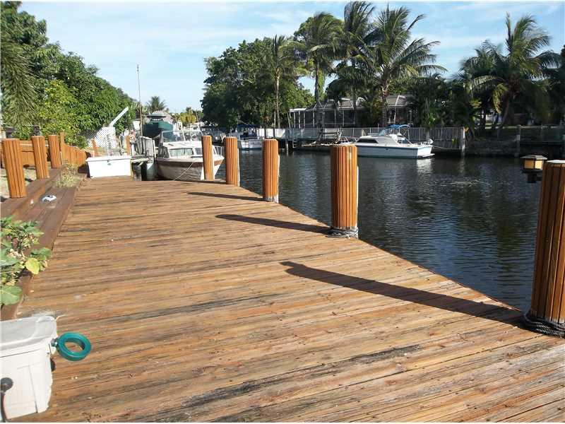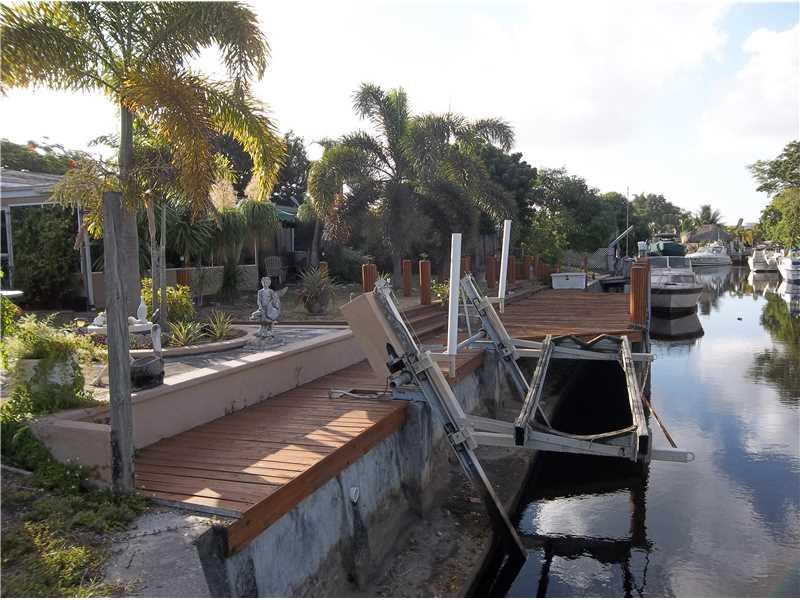 3 bedrms 2 bath, Kitchen updated custom oak cabinets, stainless steel appliances central air, 75 ft dock with boat lift, tile floors and terrazzo, 1 car garage Great neighborhood, current office could be 4th bedrm, screened porch plus out door patio lush tropical landscaping Selling in as is condition 75 ft waterfront