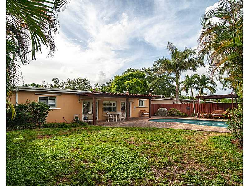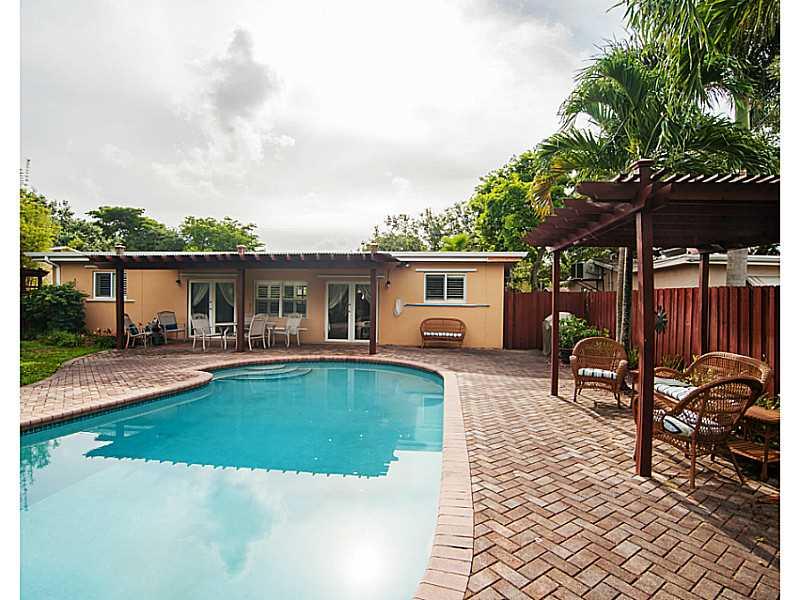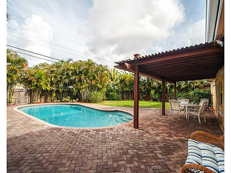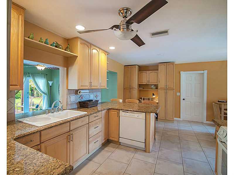 Beautiful updated 3 bedrooms and 2 bath home. Split floor plan with wooden floors in all bedrooms. 18" porcelain tile throughout, remodeled kitchen, granite counter tops. New pool heater and skimmer.New Diamond Brite finish New water heater, new gutters , New electrical panel. Lush tropical landscaping adds to the privacy of the fenced backyard with a pavered pool deck and . Plantation shutters troughout and roof replaced in 2008. Show your buyers their new home. Must see !