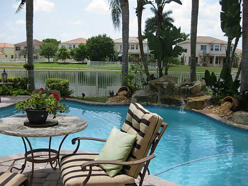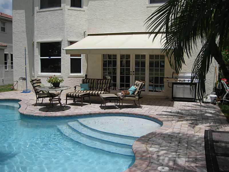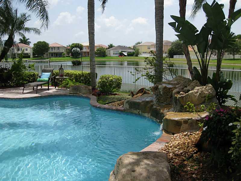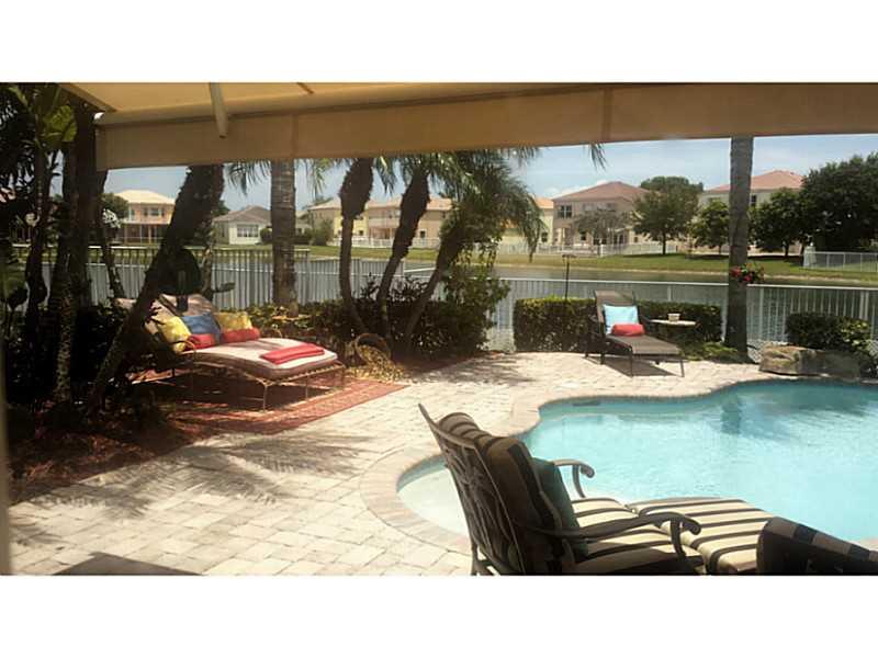 Beautiful Riviera Isles lakefront home. Features open layout, formal living and dining room, hardwood and ceramic tile floors, large eat-in kitchen with lots of counter space. French doors connect to huge master bedroom with California style closets, mast er bath with Jacuzzi tub and his and hers sink. Gorgeous fenced in backyard has a relaxing spa-like setting, free form pool with waterfall and spectacular views of the lake. Patio has brand new retractable awning. THIS HOME IS MOVE-IN READY...A MUST SEE!