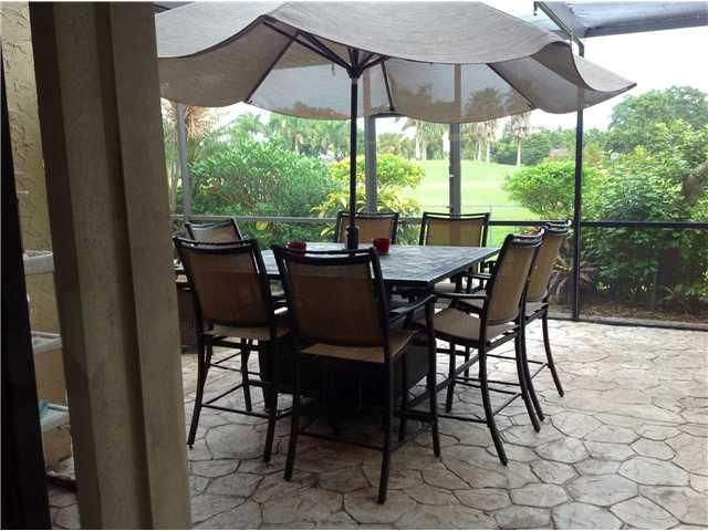 ENTER THRU A SCREENED PATIO AREA TO FRONT DOOR, LOOK LEFT TO BEAUTIFUL OPEN GARDEN/PATIO, DEN W/BUILT-IN+FULL BATH ON 1ST FLOOR, TILED THROUGHOUT, LOVELY VIEW OF LARGE SCREENED PATIO LOOKING OUT TO THE GOLF COURSE AND LAKE, BEAUTIFULLY RENOVATED KITCHEN, EXTENDING TO LAUNDRY AREA, MORE STORAGE/PANTRY + COUNTER SPACE, KITCHEN APPLIANCES 2 YEARS OLD, INCLUDES WINE COOLER, HOUSE IS SET UP FOR A GENERATOR, NEWER LIGHTING, FRESHLY PAINTED, 1 CAR GARAGE HAS WALL A/C, DON'T MISS VIEWING THIS LOVELY, SERENE HOME.