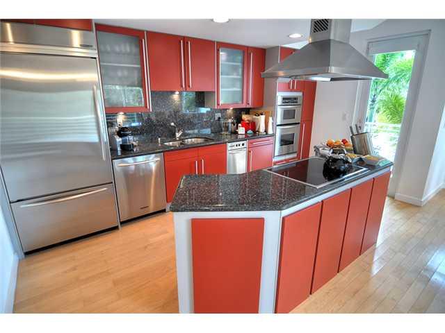 Sleek & contemporary corner townhouse residence. Dock your boat (40ft) in your backyard! Modern gourmet kitchen w/ stainless steel appliances open to living & dining room overlooking Karen Canal. One bedroom suite on pool level, 2 master suites on 3rd, ro oftop terrace & elevator! Good sized heated pool with fountain leading to the private deck. Multiple balconies. Closets built-out. 2010: reinforced seawall, deck & pool heater. 2012: A/C units & rooftop terrace. Shows like a model - Fee Simple Townhouse.