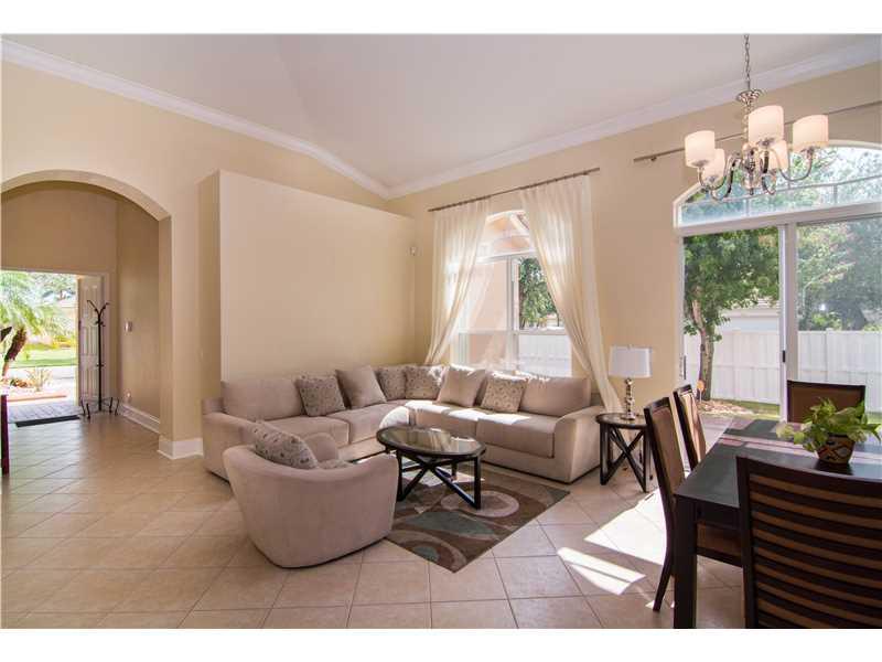 Beautifully remodeled home with impeccable attention to detail in Gated Community of Monarch Lakes. All upgrades done within past year. Spacious living areas w/cathedral style ceilings, crown molding and high baseboards. Elegant bathrooms with porcelain t ile. Master bath features 2 sinks, Jacuzzi bath and large shower. California closets throughout. Kitchen with state of the art, SS appliances. Corner home with fenced in yard. Accordion shutters throughout. This is a true turnkey home.