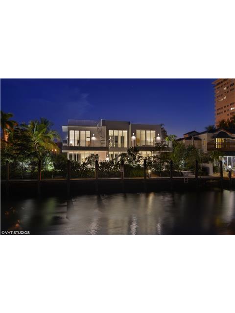 Stunning newly built modern masterpiece w/105' of deep water frontage on beautifully landscaped oversized lot. 5' setbacks permit dockage of a 95' yacht. High quality materials, flowing open floor plan, ideal for entertaining & active lifestyle. Glass ext erior walls showcase Intracoastal & canal views from every room. Chef's kitchen w/Italian cabinetry & top of the line appliances. Large rear yard w/entertainment-sized patio & salt water system pool. 3 car garage w/storage & height for car lifts.Generator