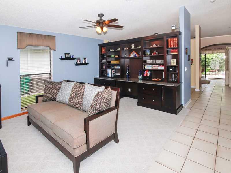 Amazing 3 bed/2 bath single family home in sought after Parkwood Isles! Volume ceilings throughout! Open living/dining area w/ carpet & tile floors! Spacious kitchen! Family room overlooks beautiful pool area! Grand master bedroom w/ laminate flooring & walk-in closet! Nice size secondary bedrooms w/ carpet! Laundry closet inside! Stamped concrete screened-in patio w/ covered area! Beautifully manicured yard! Newer roof & A/C! Great schools! Centrally located to major highways, shops & dining!