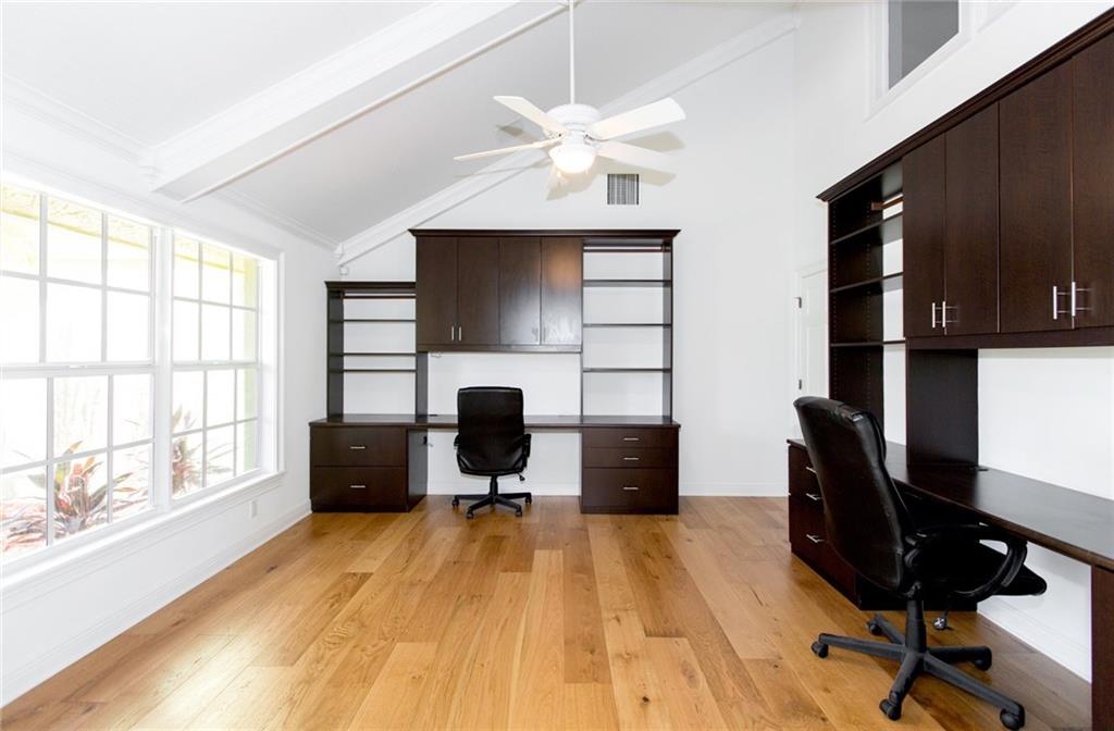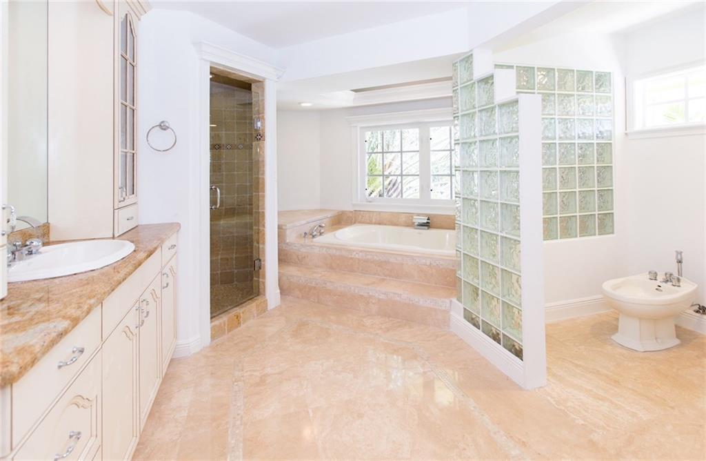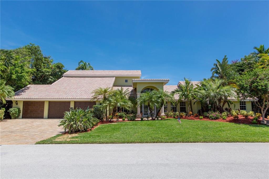 BEST BUY! 120' waterfront, 4 BR + office, 3.5 baths, 3 CG. Dock your boat & walk to the beach! Impact windows & sliders, tropical landscaping. 1st: Living, Dining, Family (marble & wood floors), fireplace, 3 BRs w/ new carpet & built-out closets, 4th BR = built-out office. 2.5 baths. Chef's kitchen w/ breakfast nook. Laundry room. 2nd: English master suite w/ fire place & balcony. Spa-like master bath: Jacuzzi tub, large walk-in shower, dual sinks - 2 large walk-in closet & gym area + W/D - Pool & spa.