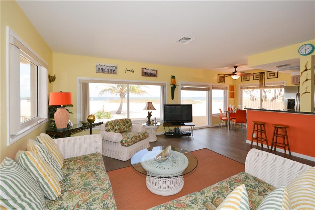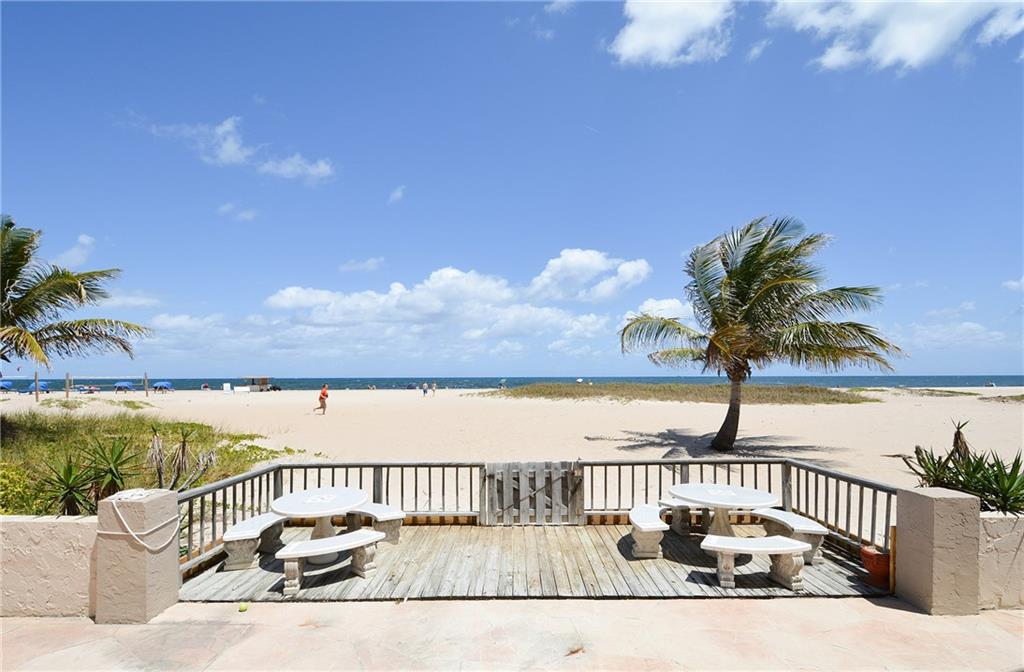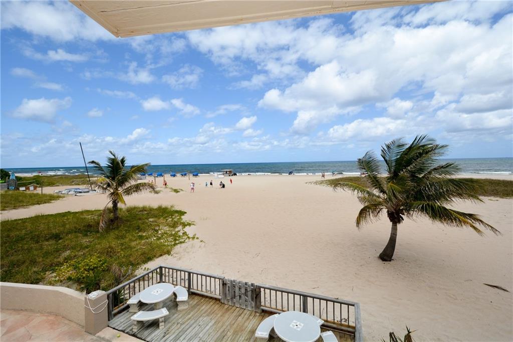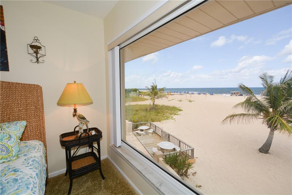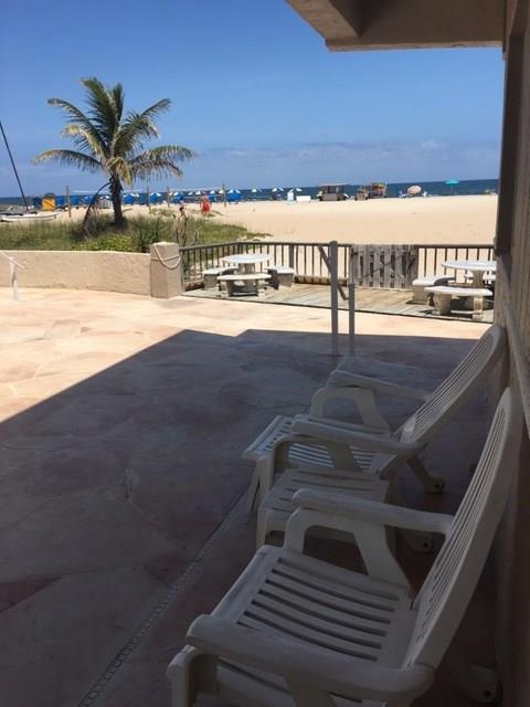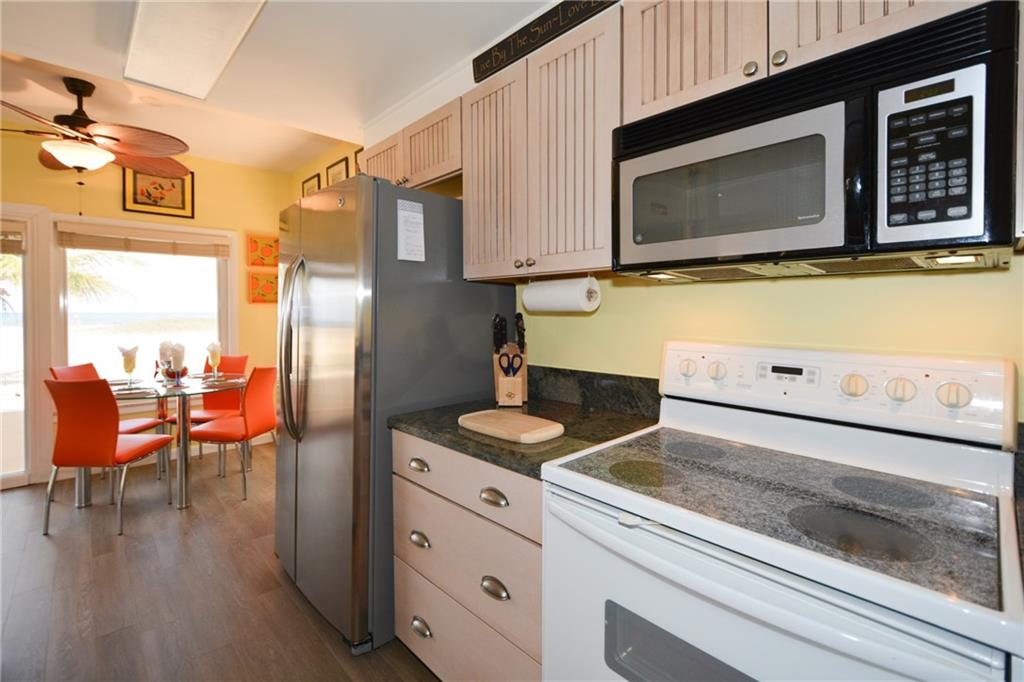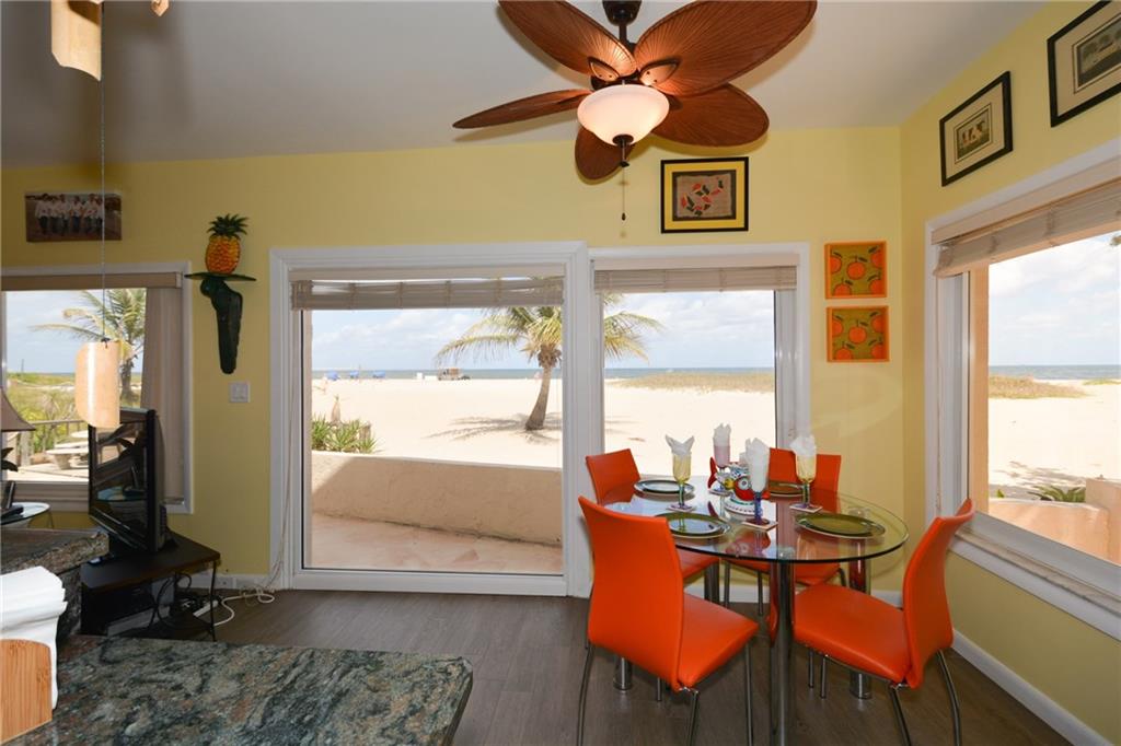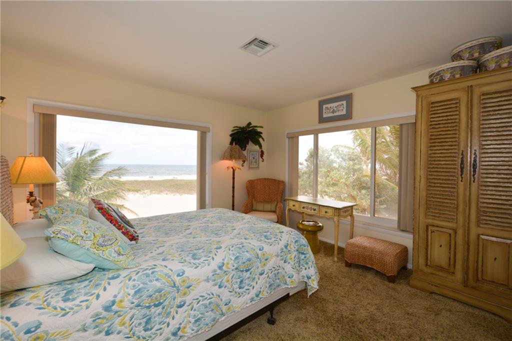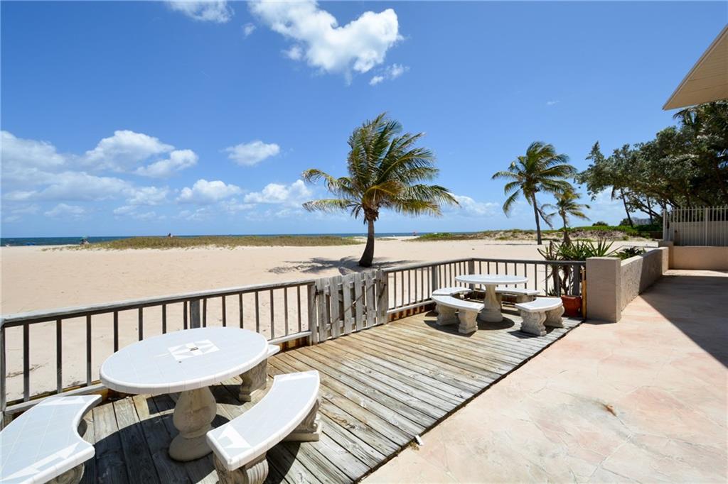 This view is WOW from every IMPACT GLASS WINDOW that surrounds this END unit SMACK ON THE SAND! Elegant & TASTEFULLY UPDATED throughout. Gorgeous granite counters in kitchen & both baths, wood cabinets, SS appliances (except fridge). Laundry rm & full bath ground floor & "wood"-look ceramic tile floors. Surrounded by patios for outside entertaining, pool & sandy beach steps from your door. Watch the sunrise over the Atlantic from your pillow & end your day with beautiful sunsets. PERFECT BEACH FRONT HOME