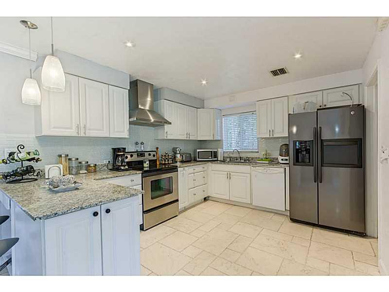 This beautiful remodeled home is perfect for entertaining with its open floor plan, separate dining room, wet bar, large wood deck & hot tub out in the backyard. Impact windows & doors, tankless water heater, crown moldings are just some of the many upgra des. This home truly stands out with its contemporary finishes such as natural stone flooring, recessed lighting, SS appliances and mosaic backsplash. Large fenced yard offers room for a pool & boat storage. Near downtown Fort Lauderdale and major hwys.