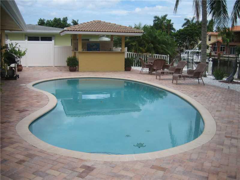 3BR,2Ba remdled home,35'wf.2cg,new 's' tile roof, paver driveway, prof.landscaping.20'remdled kit.new s.s. appliances -granite countertops,rich dark wood cabinets.wine cooler, newer a/c,noteworthy summer kitchen w/ prof.grade grill, sink, granite counters w/extensive seating,new finish on pool- mosaic turtle inlays,side garden,fenced dock.