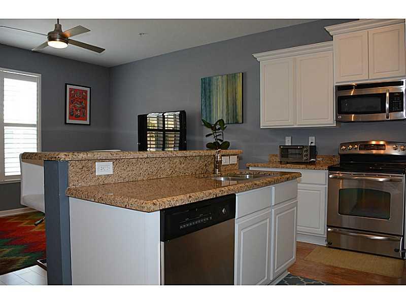 Stylish, turnkey townhome ready for immediate occupancy. The difference is in the details. Kitchen features granite counters, stainless appliances, counter seating, and pantry. Upgraded finishes including flooring, appliances, lighting and more. One car g arage, driveway parking, and guest parking available. Pet friendly. Community includes pool, clubhouse, fitness center, playroom, lake.