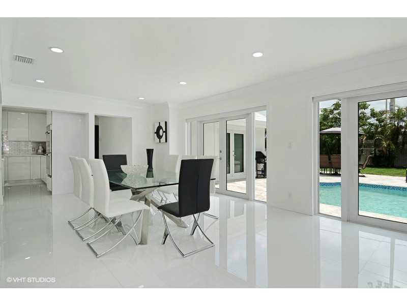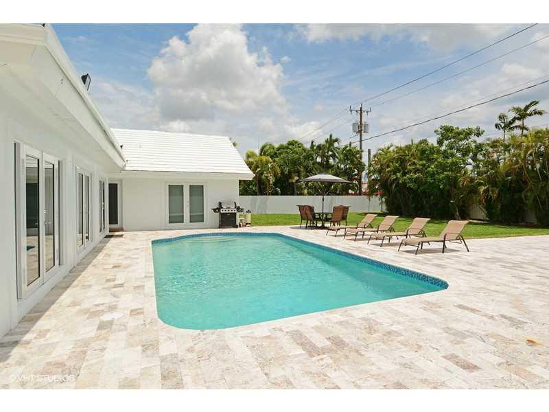 Stunning , bright and spacious house with modern look in Coral Ridge area. New floors throughout the house, beautiful kitchen with a center isle and all new stainless steel appliances. The living room and dinning area overview the pool through large hur ricane impact windows. A 4/3 house with 2 car garage, separate laundry room,paved circular driveway. Great fenced backyard with a oversized pool an lots land. All furniture and TV's are included. Best location,1.5 miles from the beach,near good schools.