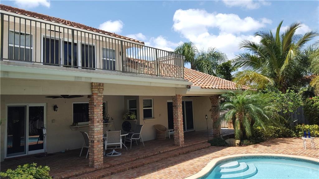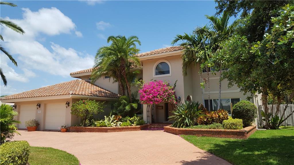 A welcoming portico introduces this particularly fine spacious home radiating warmth & ease of family living. 1st floor guest suite. Oversized master quarters w/ tree top balcony overlooking beautiful landscaped garden & sparkling pool. Inviting family room w/fireplace, open kitchen + office. Impact windows. Covered brick paver patio affords a wonderful setting for entertaining & superb privacy. Lots of curb appeal. Great house in great guardhouse gated enclave, walking distance to park, beach & mall.