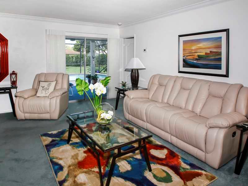 Meticulously maintained 2 bedroom 2 bath pool home situated on an acre lot. Oversized backyard features lush landscaping, fruit trees, screened-in pool (recently diamond brited) and patio! Impact windows, accordion shutters, new sprinkler system, pavers, new irrigation well, hardwired generator and custom window treatments. Close to shopping, dining and highways. This home will not last!