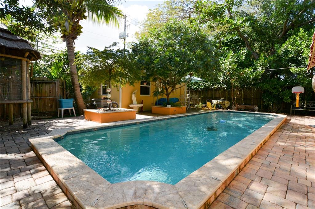 Tropical Oasis Retreat with a 2 bedroom, 1 bathroom home and separate guest cottage with 1 bedroom, 1 bathroom, laundry hook-up, full kitchen and separate address. Beautiful full size pool connects the two homes. Property is fully fenced in for privacy and offers lush, mature landscaping. Impact windows, newer barrel tile roofs, new AC, main house has a brand new bathroom with travertine and limestone. Kitchen has stunning granite counter tops and stainless steel appliances. Fabulous Croissant Park!