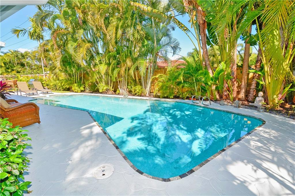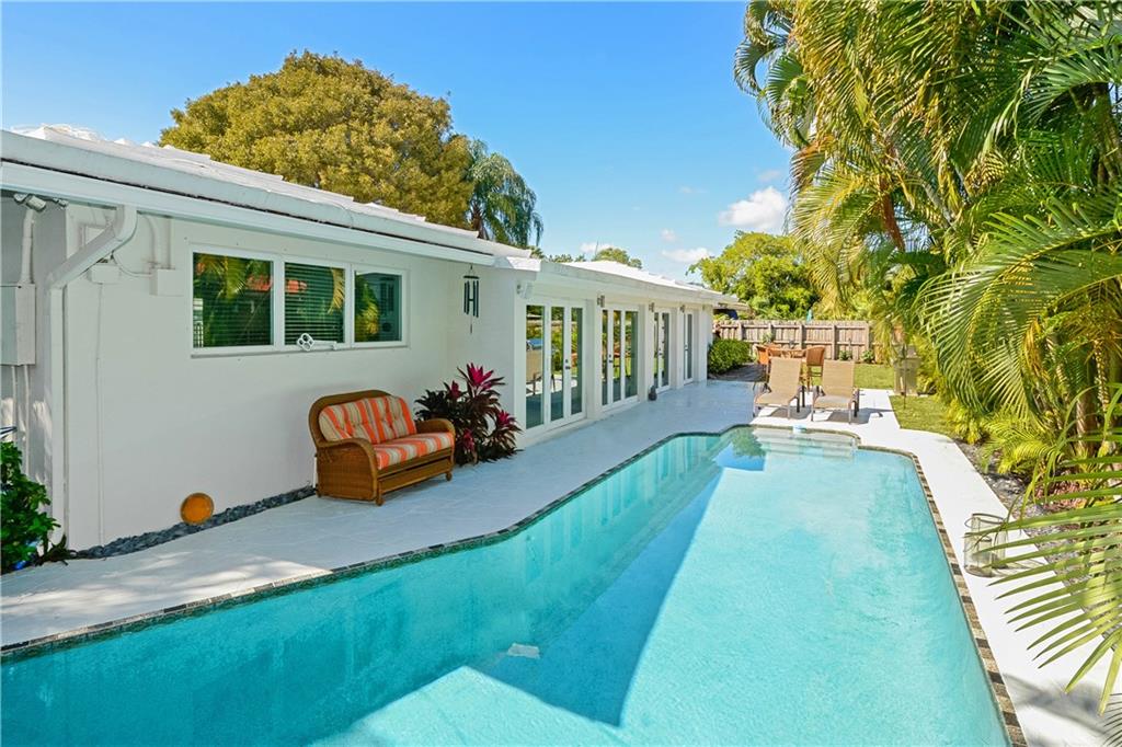 Escape to renovated, light & bright, Mid-Century modern retreat in heart of Coral Ridge. Wide open, zen-like floor plan allows for easy entertaining & flexible living spaces inside and out. Everything is like new: wood floors in bedrooms, new dryer, newer washer, impact windows, kitchen, lush landscaping and 5T A/C. Exterior & interior just painted, LED hi-hat lighting throughout home. Expanded living/dining room offers beautiful pool & garden views. Owner financing available. Furniture is negotiable.