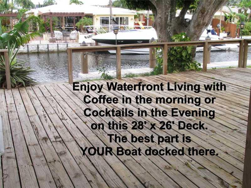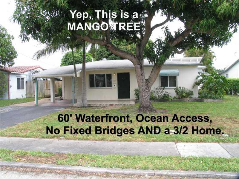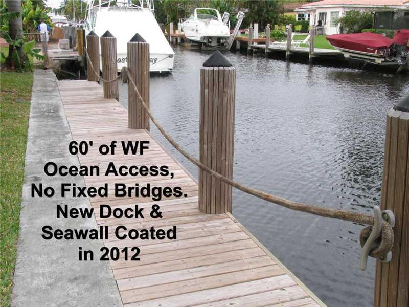 BRING YOUR BOAT. 60' of WATERFRONT- OCEAN ACCESS- NO FIXED BRIDGES & a 3 bedrm, 2 bath home is included. You'll love to ENTERTAIN YOUR FRIENDS on the 28' x 26' Deck by the water OR just enjoy it yourself for coffee or cocktails. The DOCK IS NEW in 2012 & Seawall was refaced then also. The home has 2 A/C's (1 New in 2012) & 2 Water heaters. This is the BEST DEAL IN THE CITRUS ISLES. Close to I-95 & THE AIRPORT AND all that DOWNTOWN FT. LAUDERDALE HAS TO OFFER. CHECK OUT ALL THE PHOTOS. EASY TO SHOW.