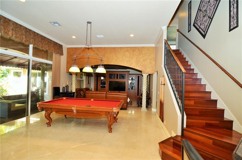 BREATHTAKING COURTYARD ESTATE SITS UPON ONE OF THE MOST BEAUTIFUL COMMUNITY .DETACHED GUESTHOUSE.THE HOME BOASTS MARBLE AND WOOD FLOORS,GOURMET KITCHEN WITH GAS STOVE ,SS APPLIANCES,GRANITE COUNTER TOPS AND WOOD CABINETS.SURROUND SOUND INSIDE AND OUTSIDE. NEW WATER HEATER,ALL CUSTOM MADE DRAPES, GARAGE CABINETS&FLOORING. SECURITY CAMERAS,CROWN MOLDING. ENJOY THE BEAUTIFUL PATIO WITH AN OVERSIZED POOL WITH AN AWNING AND A WATER FALL.