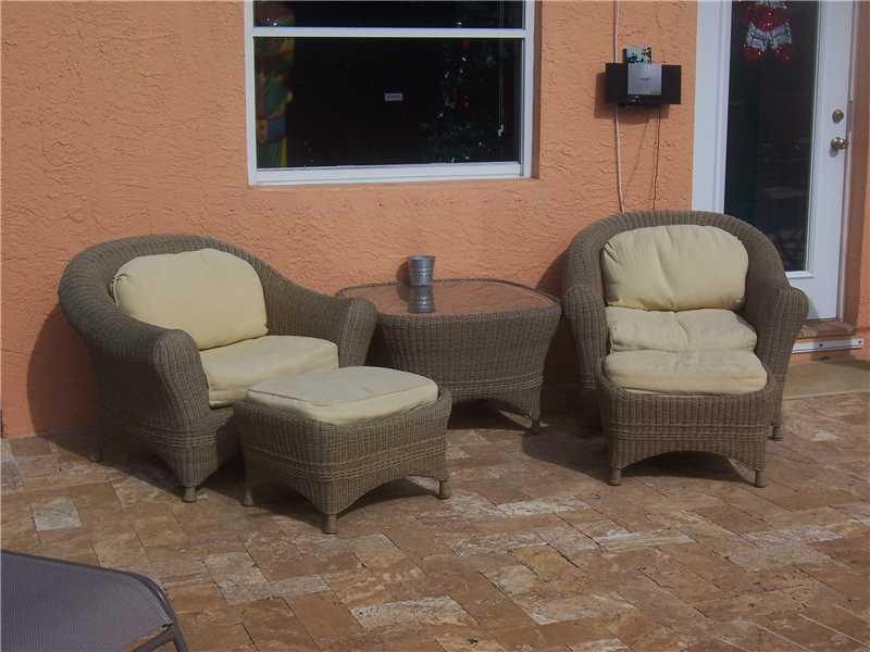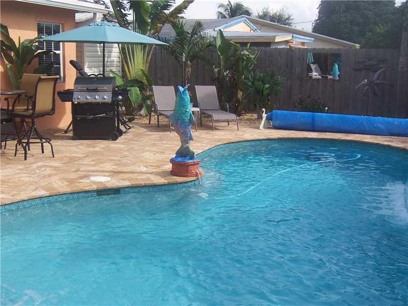 A fully furnished tropical Key West oasis in the heart of the City. Amazing heated electronic SW pool & spa w/waterfall in the midst of a fantasy yard w/beautiful landscapes, hammock & patio furniture, plus an expandable electric awning to cover your pati o for those hot summer days. This 3/1 has tile floors, a white bright kitchen w/tile counters & dinner bar, master bedroom w/twin closets (one a walk in), bath w/updated vanity, sink & commode. Updated electric,2012 digital a/c, ceiling fans and shutters.