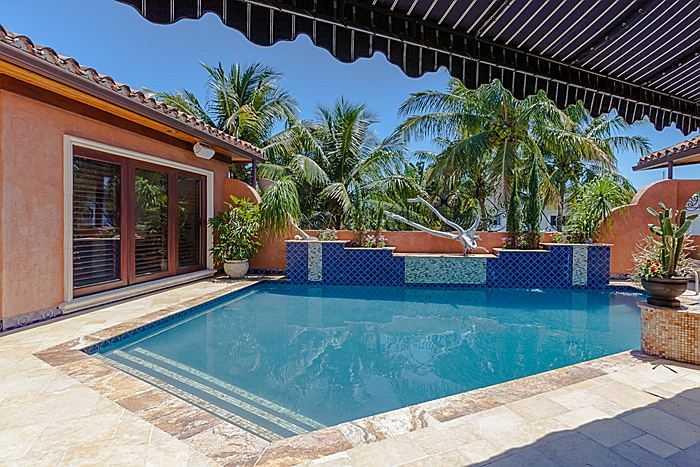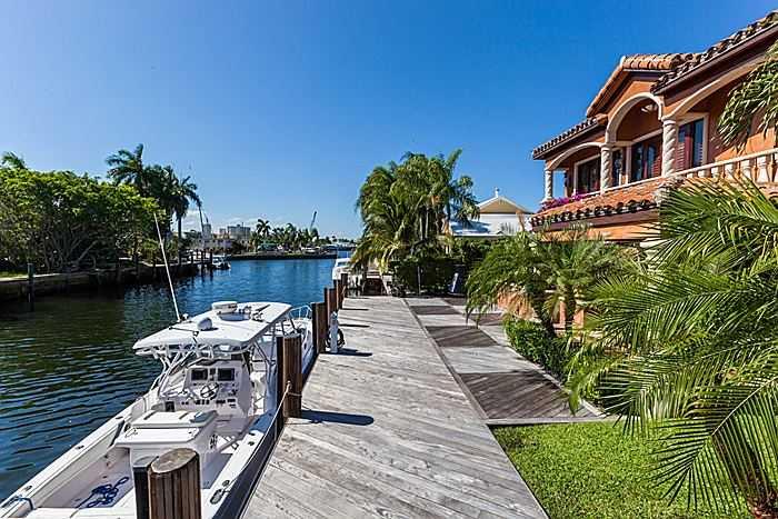 Unique Tuscan elegance & craftsmanship by renowned architect. One-of-a-kind second level pool. Motor court & inviting tree canopied courtyard lead to double door entry of hand carved mahogany. Two story foyer entry opens to hand crafted brass rail stairca se & elevator & 2nd floor main living area. Gourmet kitchen, great room with fireplace & dining room open to spectacular covered patio & private pool area. State of the art theatre, protected deep water dockage, gated community close to schools/Las Olas