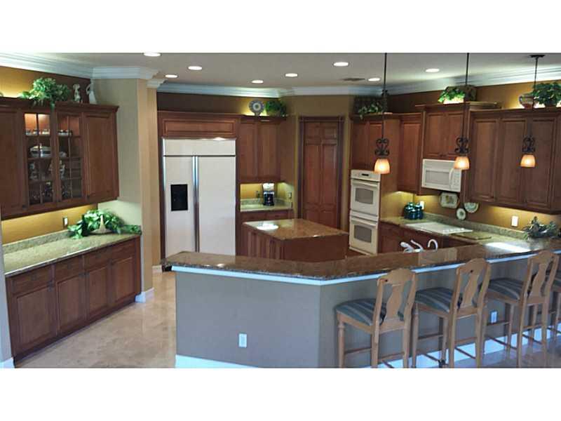 Entertainer's dream!High pollished marble floors;Waterfront Extended Sonoma model with approx 900sq.ft.wing added in 2012-ideal mother-in-law suite with sep. entrance;6 bedr. could be 8 bedrooms;theater room;billiard room;each bedroom has a full bath;24"custom kitchen cabinets with granite counters;4034sq.ft of pavers with 361sf summer kitchen built in 2012 with stainless cabinets,granite counters, marble floors and custom BBQ;freeform heated pool; custom in-ground firepit;moldings; 2story;closet systems;
