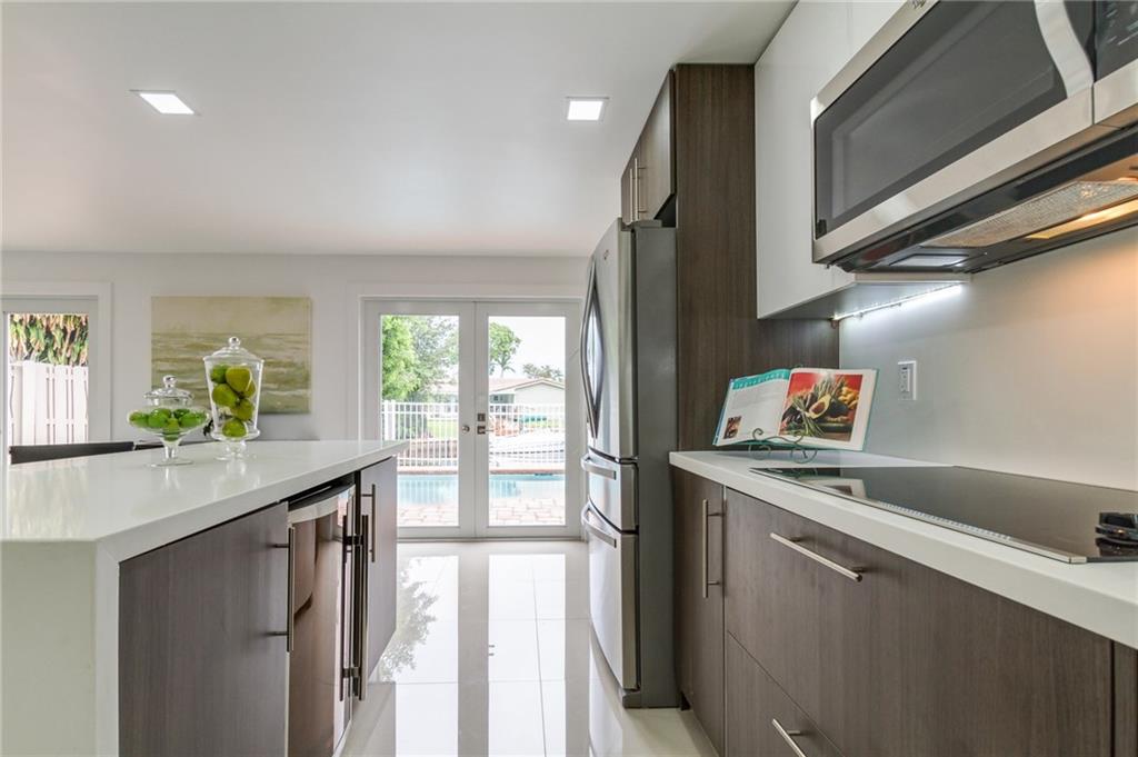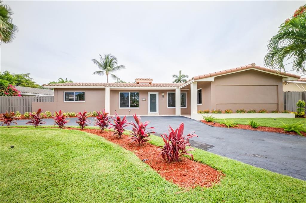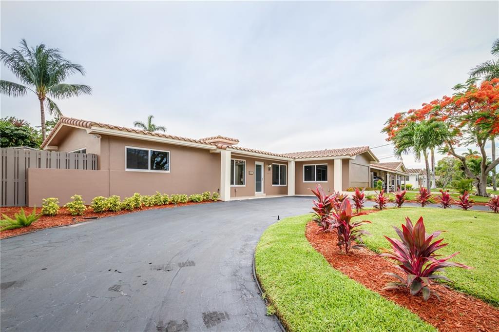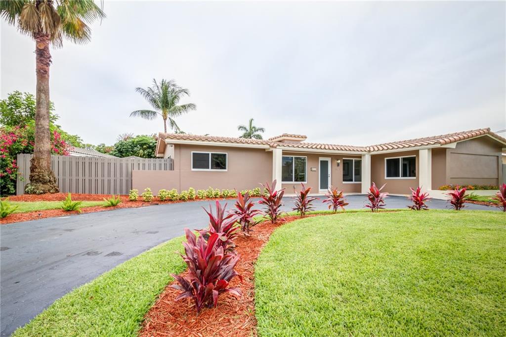 Beautifully Remodeled Coral Ridge Isles Waterfront Home! Featuring direct ocean access and its own dock, this home has a brand NEW barrel tile roof, NEW impact windows and doors, brand NEW kitchen with quartz counter tops and stainless steel appliances. All 3.5 bathrooms have been remodeled with high end finishes as well as electrical has been updated throughout entire home. Also featuring LED lighting, NEW tankless water heater, large circular drive way, paved pool deck and open concept great room!