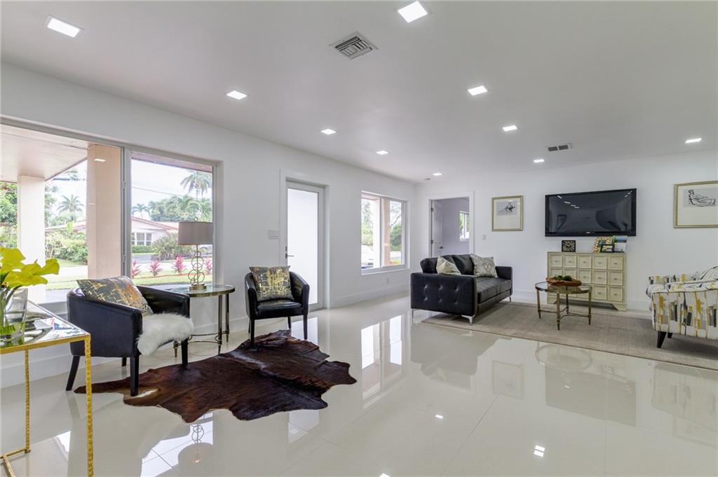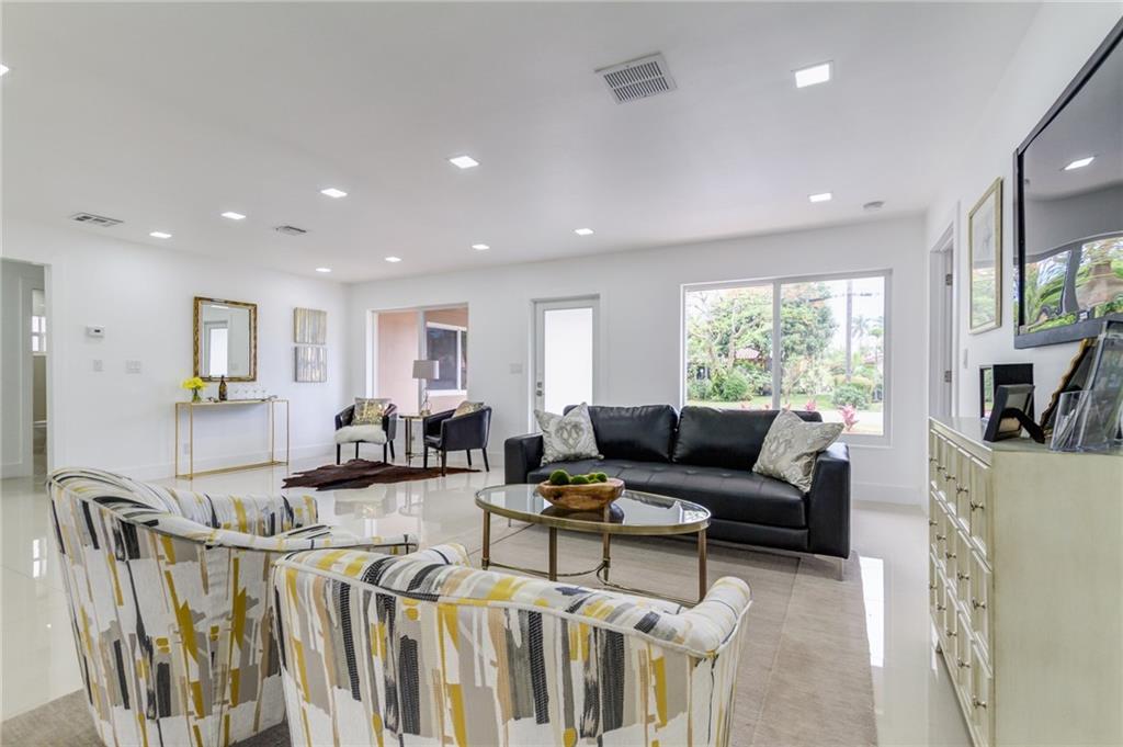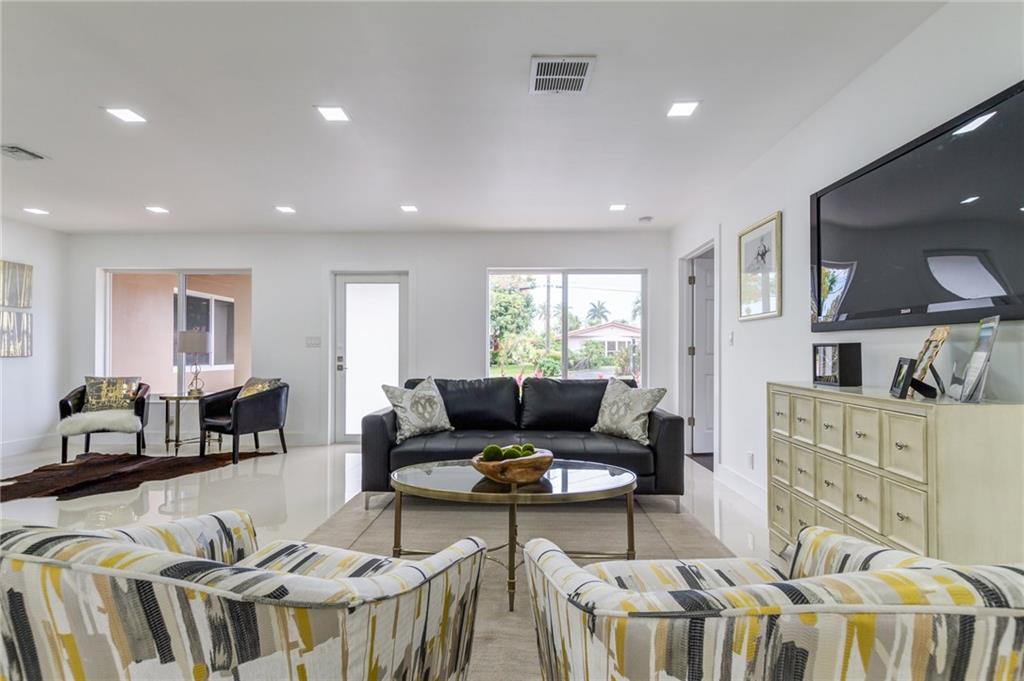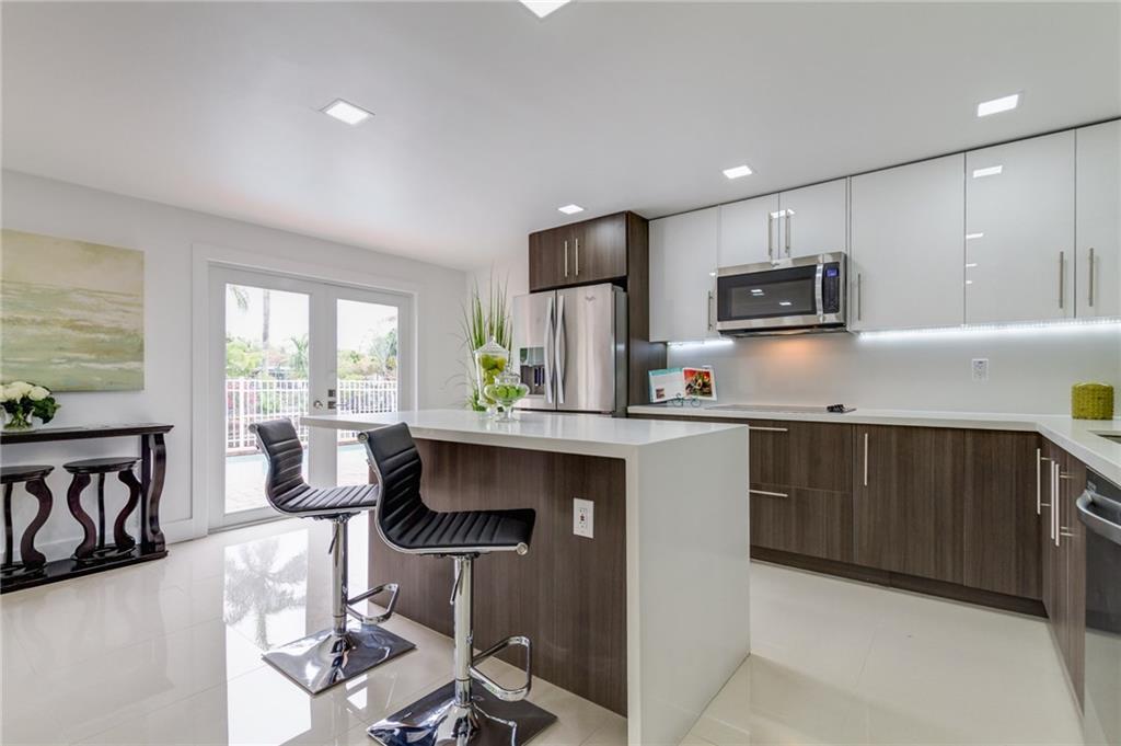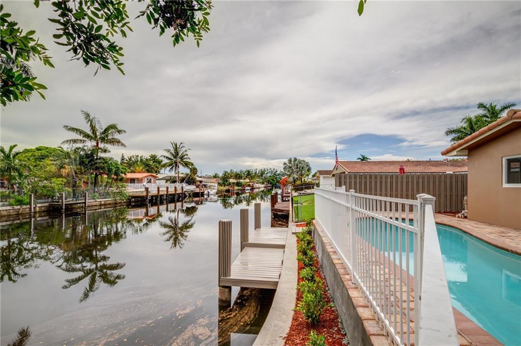 Beautifully Remodeled Coral Ridge Isles Waterfront Home! Featuring direct ocean access and its own dock, this home has a brand NEW barrel tile roof, NEW impact windows and doors, brand NEW kitchen with quartz counter tops and stainless steel appliances. All 3.5 bathrooms have been remodeled with high end finishes as well as electrical has been updated throughout entire home. Also featuring LED lighting, NEW tankless water heater, large circular drive way, paved pool deck and open concept great room!