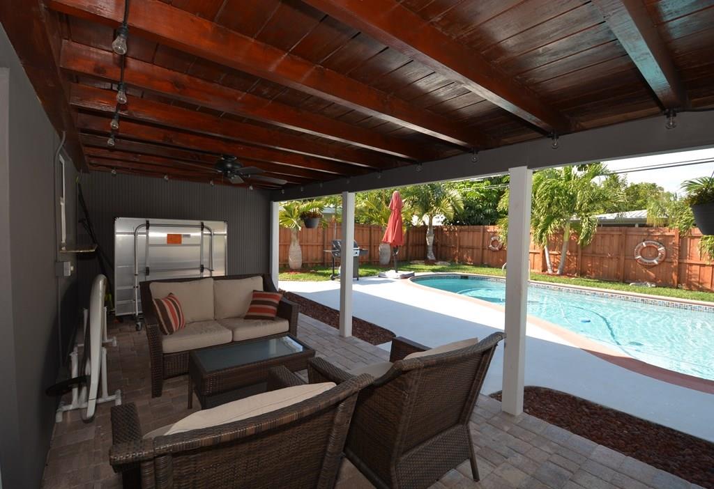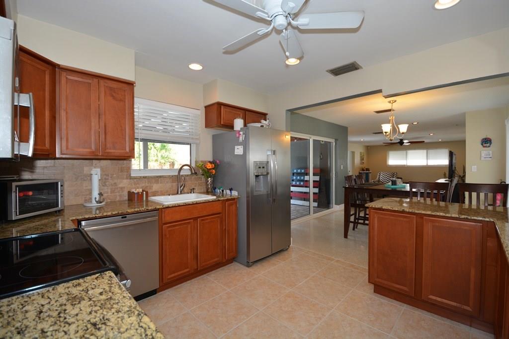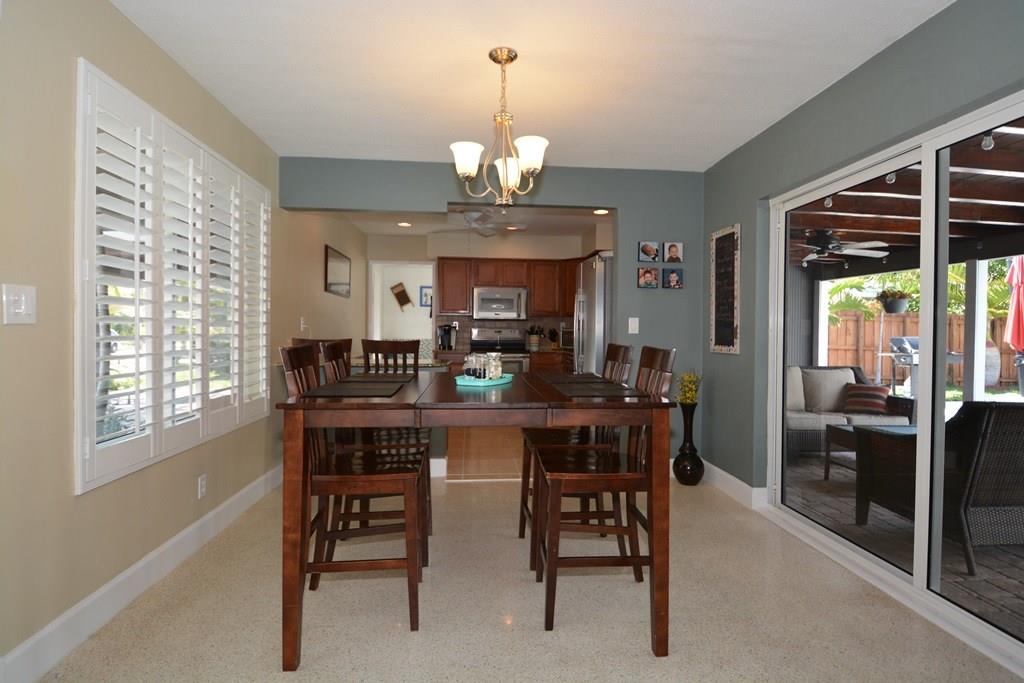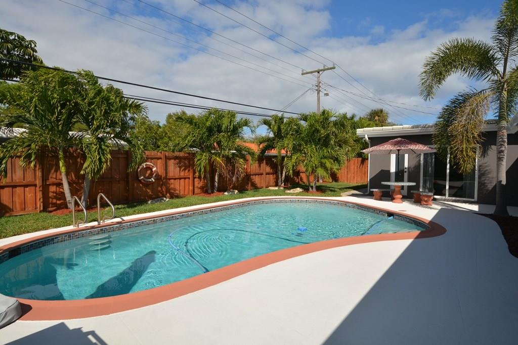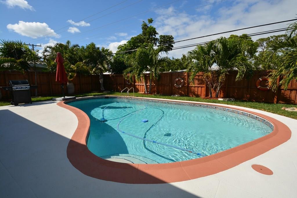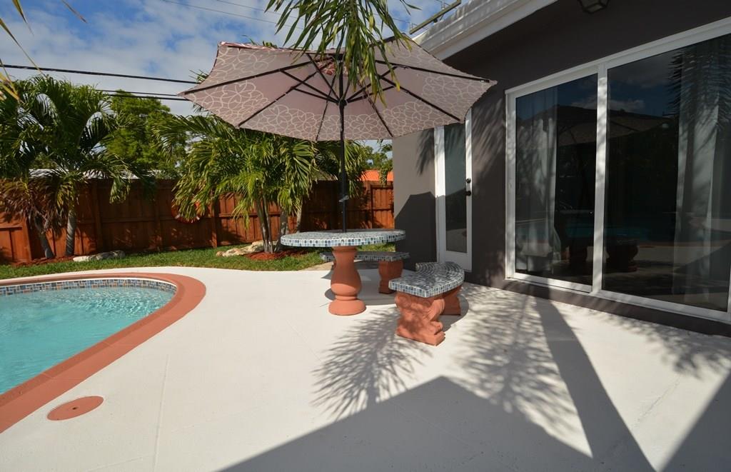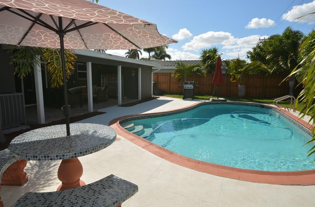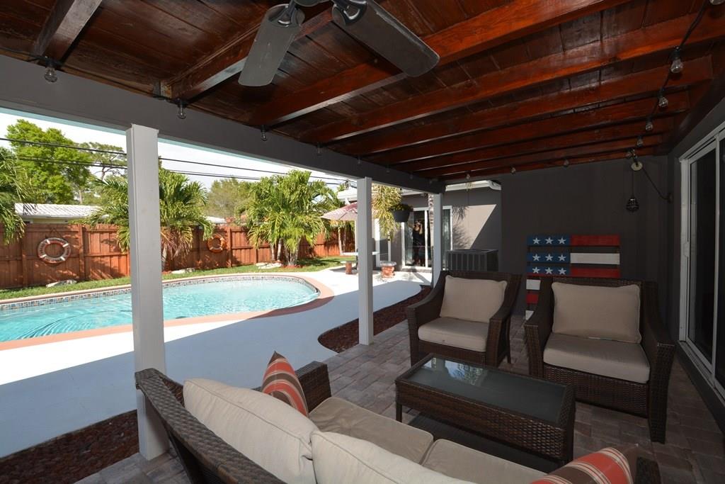 Immaculately kept 3/2 with pool. Polished Terrazzo floors with impact windows & doors. Open concept floor plan with updated baths and kitchen. Separate interior laundry room. Tree lined street with side walks. Covered outdoor seating with fenced in yard. Perfect landscaping!