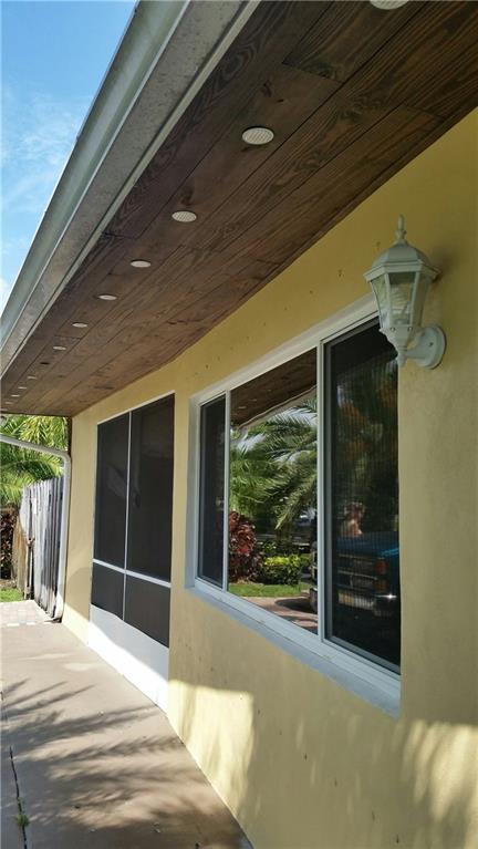 Professionally landscaped this 2/1 home has potential to be converted into a 3/2. Updated windows, clean & well maintained with whole home alarm system including the storage shed. RO(reverse osmosis) water system with a 2.5 gallon reserve under kitchen sink, separate well for sprinkler system, whirl pool tub, gas stove &hot water heater (washer, dry & deep freezer not included) sensered security lights on all 4 corners of the house, within walking distance to shopping,restaurants,park & golf. Sold As Is.