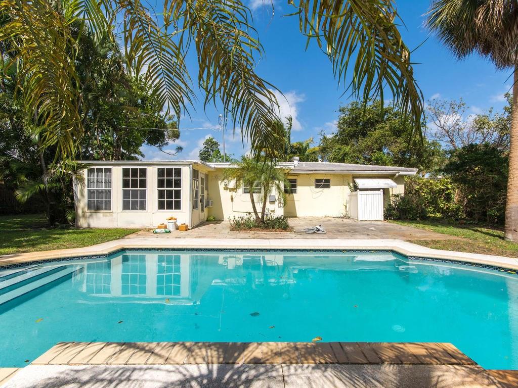 Charming Florida style home in well sought Lyons Park with over 1/4 acre features a split open floor plan. The kitchen has an island that overlooks the formal dining/family room. Huge sun room leads to a huge backyard & pool. Seller has plans to convert sunroom to huge master b/r. Tile throughout & wood laminate in bedrooms. Freshly painted. Lots of natural light & storage. Fenced backyard landscaped beautifully w/ lots of trees. Less than 2 miles from beaches. No HOA. Park your boat at your house.