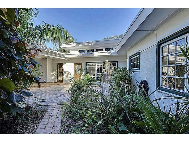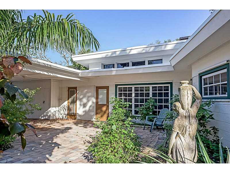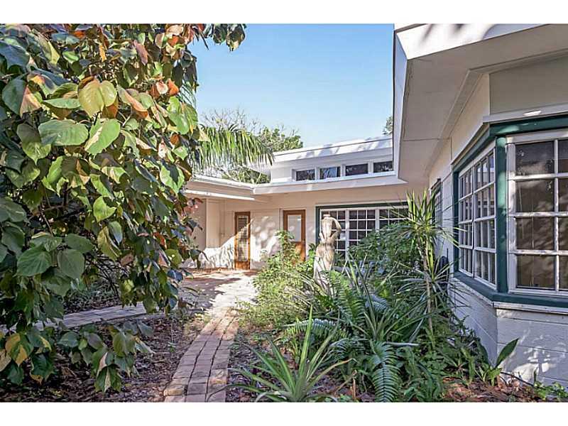 Uniquely designed Gill home in south west Fort Lauderdale. Double corner lot, gated, embellished by tropical palms, shrubs, & fruit trees. Open exposed cathedral ceilings, typical of a Gill Home with wide open living space, wood & tile floors, fireplace & lots of windows. Well-equipped kitchen, onyx countertops, an island-breakfast bar, a doorway to a large patio & serene backyard gardens. Central to downtown, airport, Nu River waterway. Blocks to grocery stores, restaurants & more.House of worship nearby