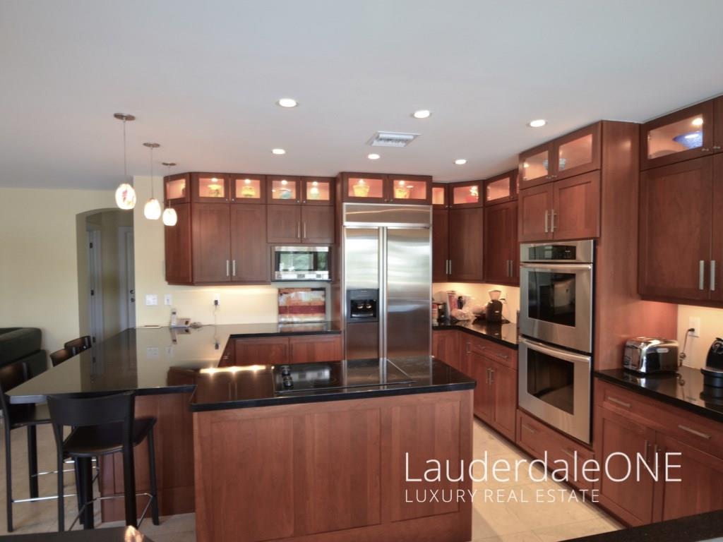 Move-in ready, bright & airy, completely remodeled contemporary home w/ marble floors, gourmet kitchen, stainless Thermador & Bosch appliances, impact glass, 25k watt whole-house generator, lush tropical pool. Custom designed wall units in large family ro om and bedroom. This well-maintained 3 bedroom/2.5 bath residence is located on a tranquil tree lined cul-de-sac in desirable Landings neighborhood. Shopping, dining & the beach minutes away. Large dock on peaceful waterfront with direct ocean access.