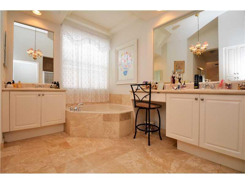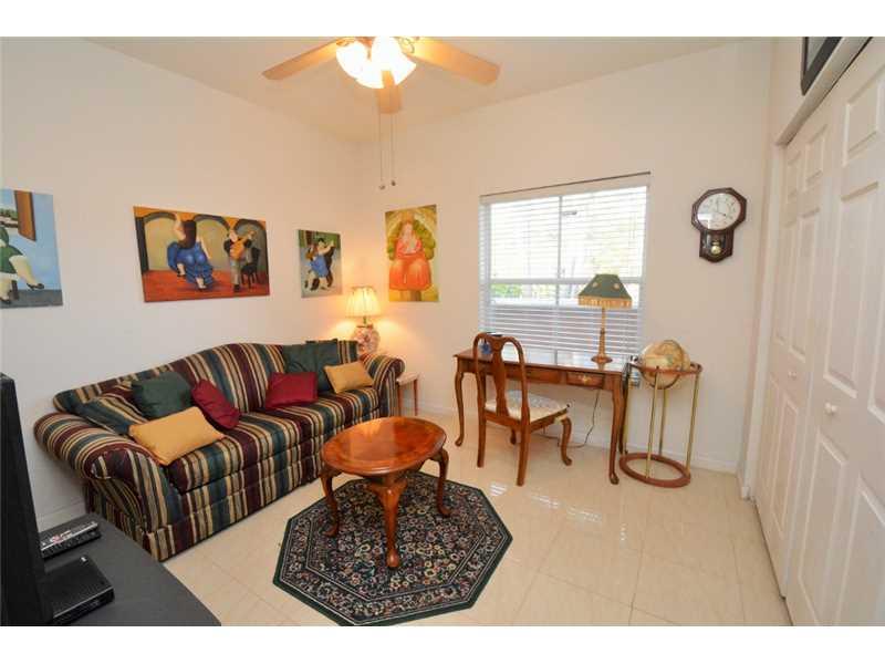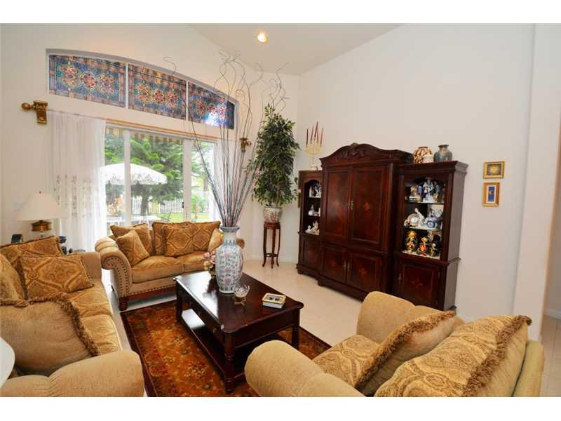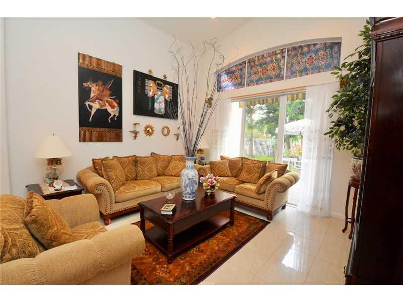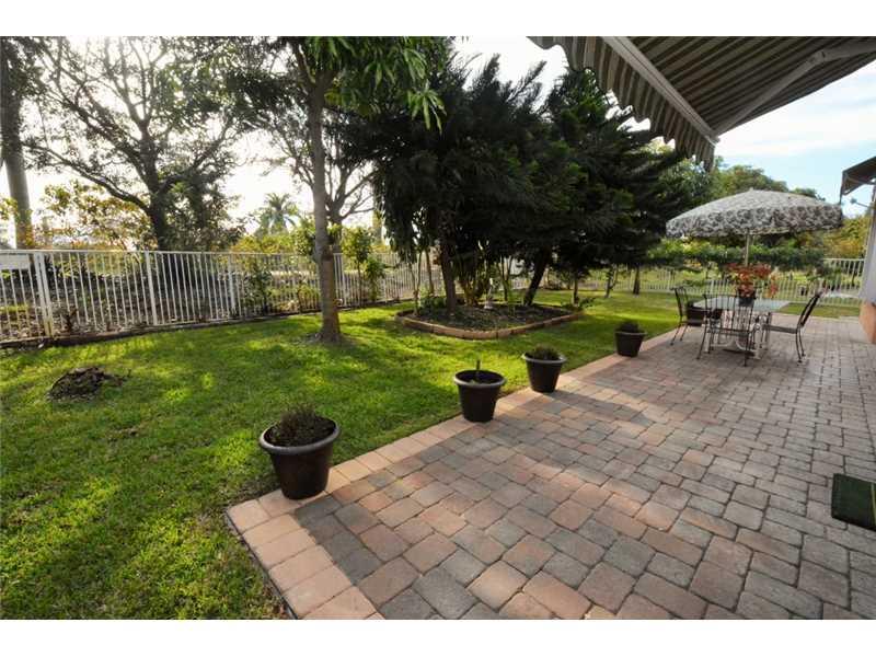 GORGEOUS HOME W/COMPLETE PRIVACY IN THE FENCED IN BACKYARD. OVERSIZED PATIO RUNS THE LENGTH OF HOUSE, W/COVERED SITTING AREA. 3 RETRACTABLE AWNINGS CREATE ADD'L SHADE. EXTENDED FAMILY ROOM GIVES EXTRA LIVING SPACE. STUNNING PORCELAIN FLOORS THROUGHOUT. K ITCHEN HAS ALL S/S&UPGRADED FURNITURE QUALITY CABINETS&LARGE EAT AT CENTER ISLAND. MASTER BATH UPGRADED W/MARBLE FLOORS, SHOWER&COUNTERTOPS. FRONT OF HOME FEATURES A LOVELY COURTYARD AREA W/SITTING AREA. HOME SECURED BY SECURITY SYSTEM&ACCORDION SHUTTERS.