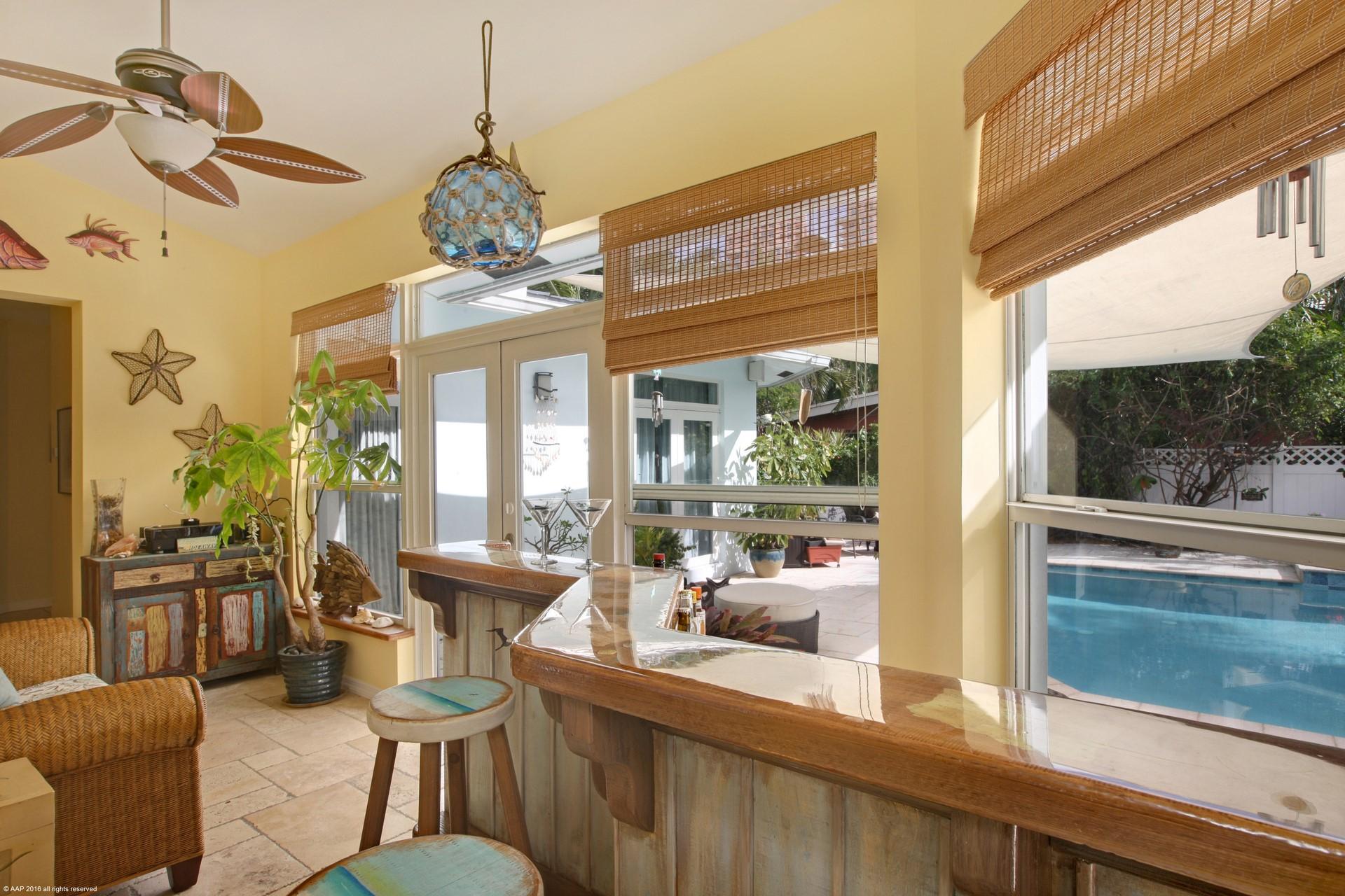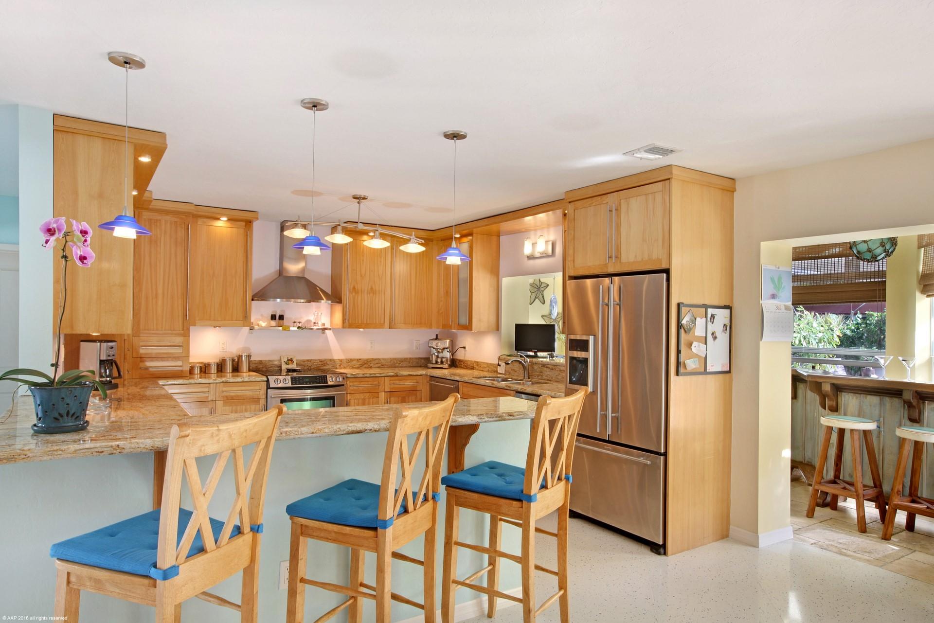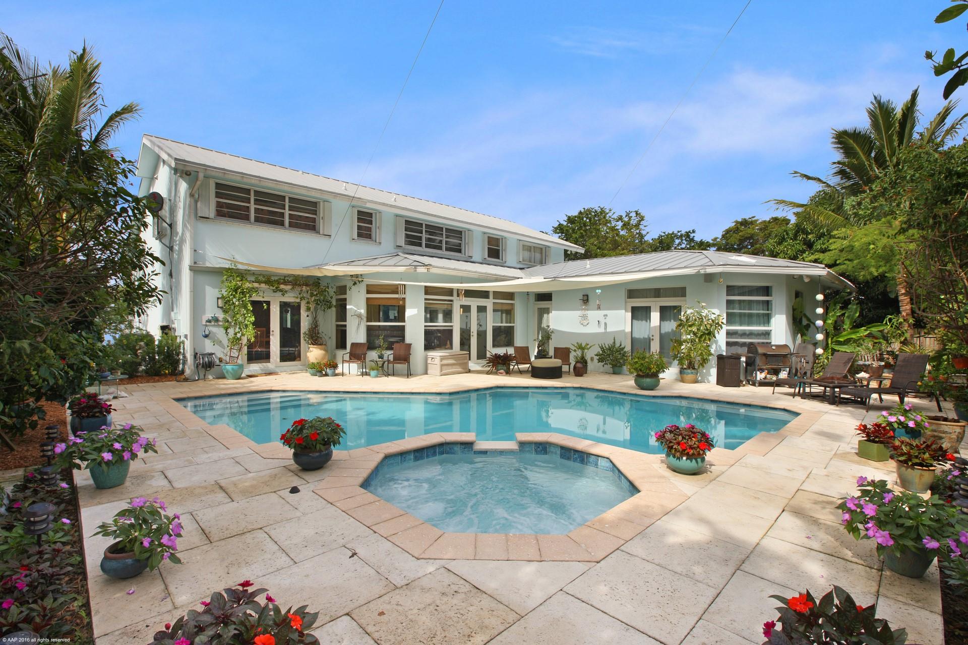 STEPS FROM THE BEACH! This immaculate four bedroom, four bath contemporary Key West style home is situated just steps away from beautiful Ft Lauderdale beach. The open and airy floor plan features 20 foot high Cyprus wood beam ceilings and beautifully renovated kitchen and baths with polished Havana Blue terrazzo floors throughout the main living areas. The top of the line kitchen has stainless steel Jenn-Air and Kitchen Aid appliances, granite countertops and solid birchwood, shaker style cabinets. The custom free floating birch and oak staircase with stainless steel railing and balustrade is like a work of art in the center of the home. French doors open to a keystone patio and a tropically landscaped garden surrounding an extra large salt pool with waterfall spa. Other features of the