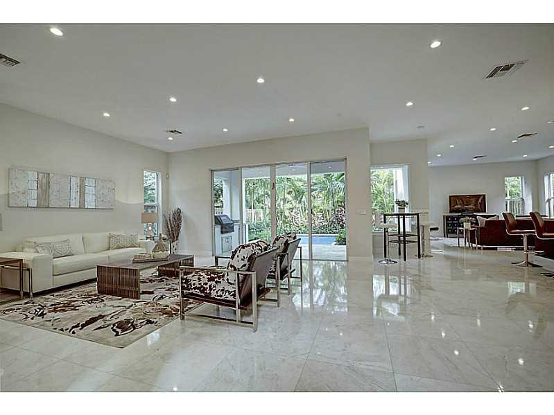 BRAND NEW 2015 5br/ 4bth Contemporary home located in Rio Vista, Ft Lauderdale's most sought after family neighborhood. Staged Furnishings Make You Feel Right At Home! Open floor plan w/5th br down, Gourmet Kitchen w/Thermador SS appliances & 10' island. Entertainment features incl. a stunning wet bar and a full outdoor kitchen surrounded by lushly landscaped pool. Marble floors downstairs. SS & wood stairs lead to a huge master suite w/private balcony and 3 addt'l bedrooms. Security system/Smart Home.