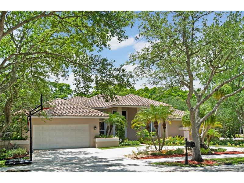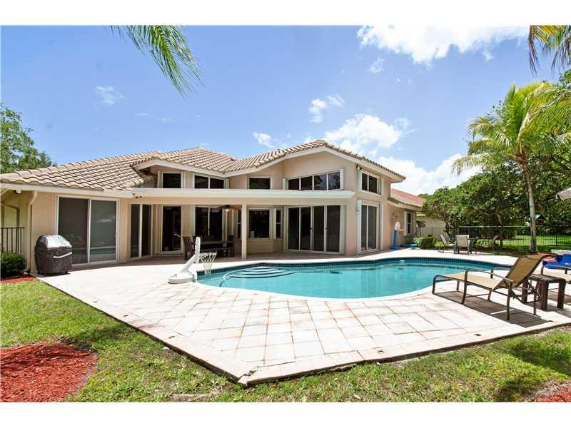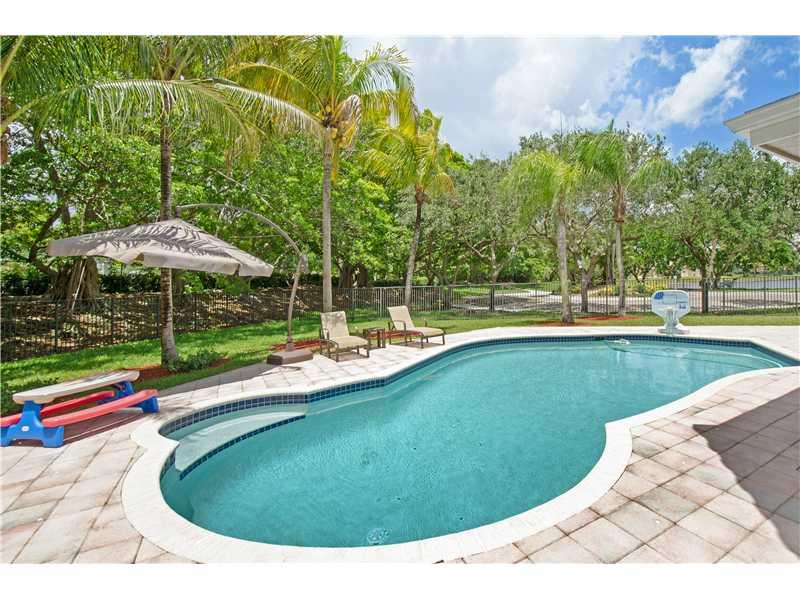 Ideal 5/3 pool home,triple-split floorplan,15,453 SF fully fenced end cul-de-sac lot.Open & bright w/high ceilings & lovely views to outdoors thru-out.Ample open Kitchen w/beautiful wood cabinets & glass detailing,granite counters & SS appliances.Marble & wood floors,crown molding, generously sized bdrms,all UPGR baths,great closets thru-out,separate Laundry Rm,accordion shutters & some impact glass,plus a 2006 roof.Outdoors has a large Patio/Pool area, tons of green space & some water views. A must see!