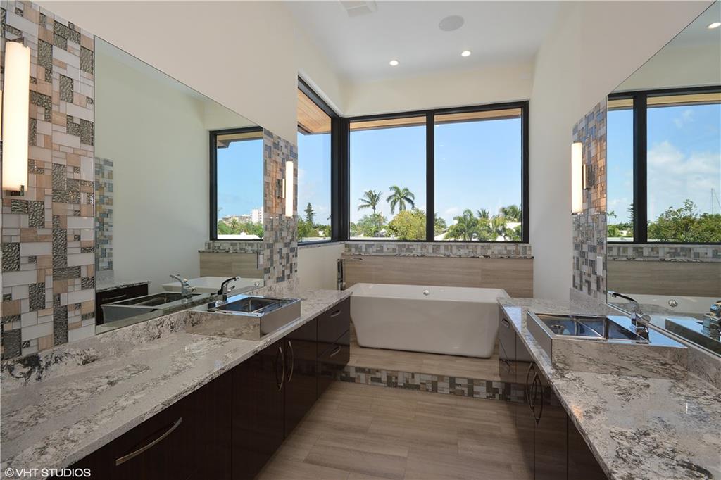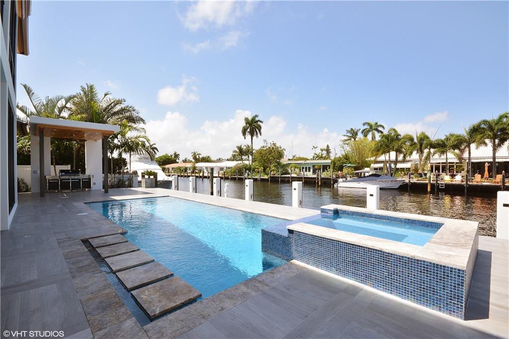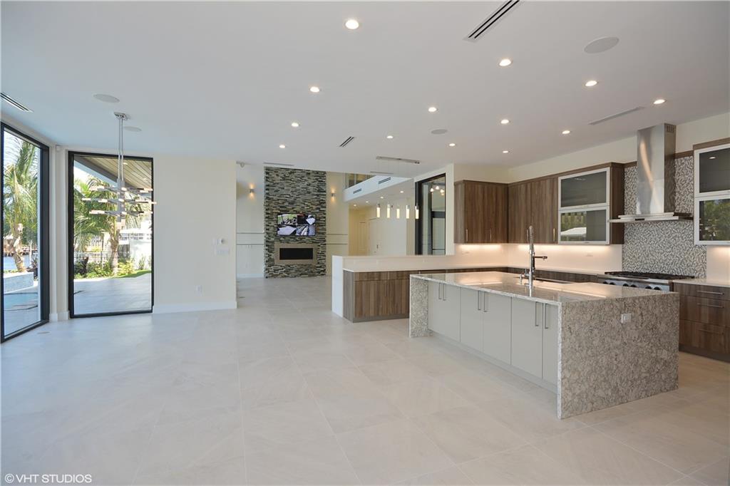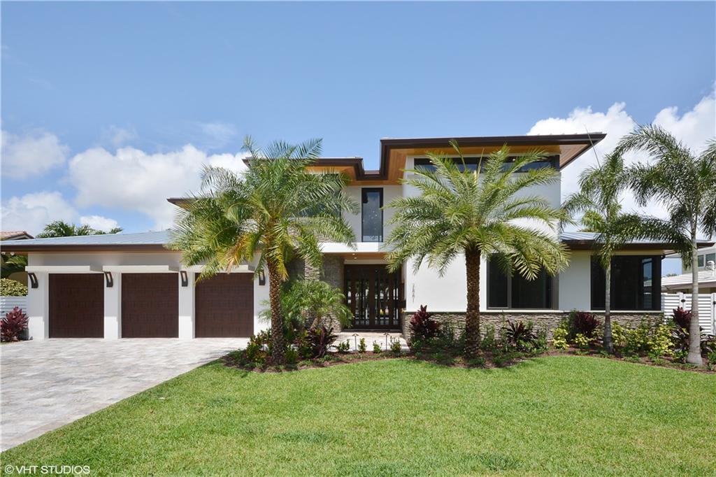 Striking new contemporary, energy efficient "smart home" offers 5BR/5BA/3CG (lift capability for 3 more) on 100' of deep water with expansive waterway views. Modern open floor plan showcase 23' walls of glass, sleek interiors and custom lighting. Addition al features include wine room, fireplace, wet bar, large chef's kitchen, breakfast room, 2 master suites, elevator and much more. Outside boasts a large pool with spa, summer kitchen, full house generator ready and concrete dock. Ready for delivery!