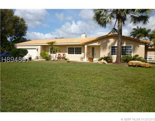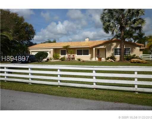 UPDATED AND REMODELED 4/3.5/2 COUNTRY HOME IN DESIRABLE QUIET, PEACEFUL NEIGHBORHOOD. FULL ACRE, CUL DE SAC LOCATION. HORSES ALLOWED, SOLID WOOD KITCHEN CABINETS, S/S APPLIANCES, SILTSTONE COUNTERS, ALL TILED IN LIVING AREAS AND SOLID WOOD IN BEDROOMS. TW O MASTER SUITES, TEXTURED CEILING AND WALLS, NEW WASHER AND DRYER (2011), WORKING FIRE PLACE, CROWN MOLDINGS, LARGE POND WITH FOUNTAIN AND SITTING/FISHING DOCK. LARGE PRIVATE YARD WITH MATURE TREES AND PALMS. COME HOME AND RELAX BY THE OVERSIZE POOL.