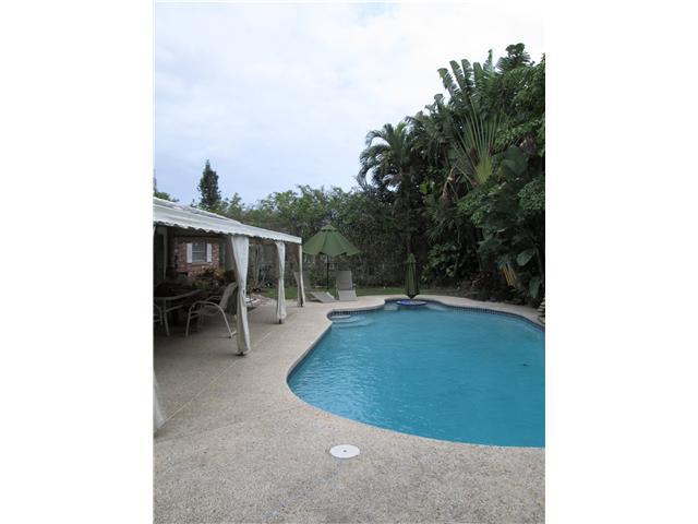 Waterfront pool home in desirable Coral Ridge Isles. Floranda School District (A school). Across the street from Pinecrest School. Charming 3 bedroom 2 bath secluded house (set back down from the main road). Tropical pool area with waterfall and covered patio. Seawall with dock and boat lift. Additional large covered entertainment area on dock. The furniture is negotiable. The house needs some TLC. Investors welcome. Please bring all offers.